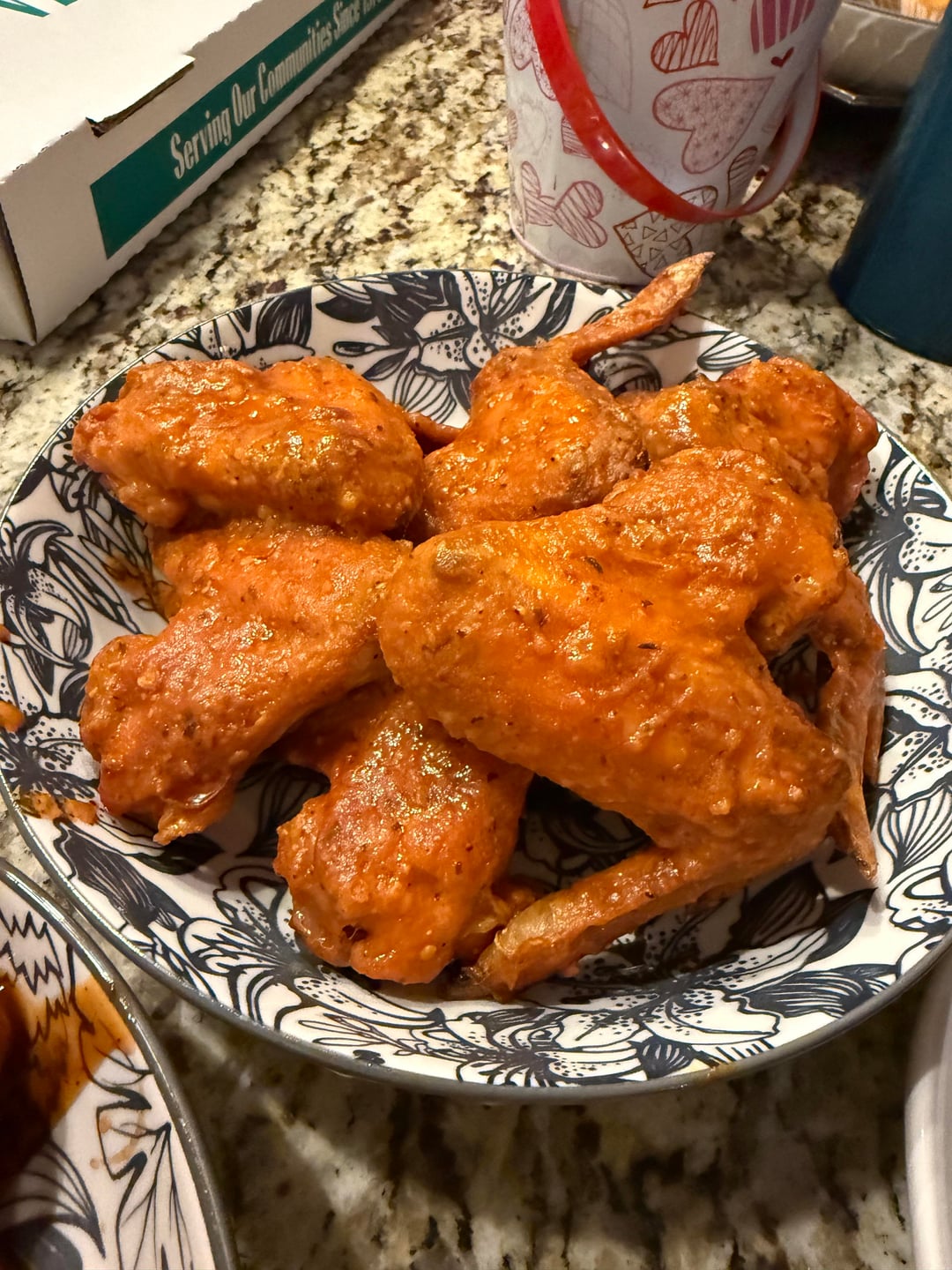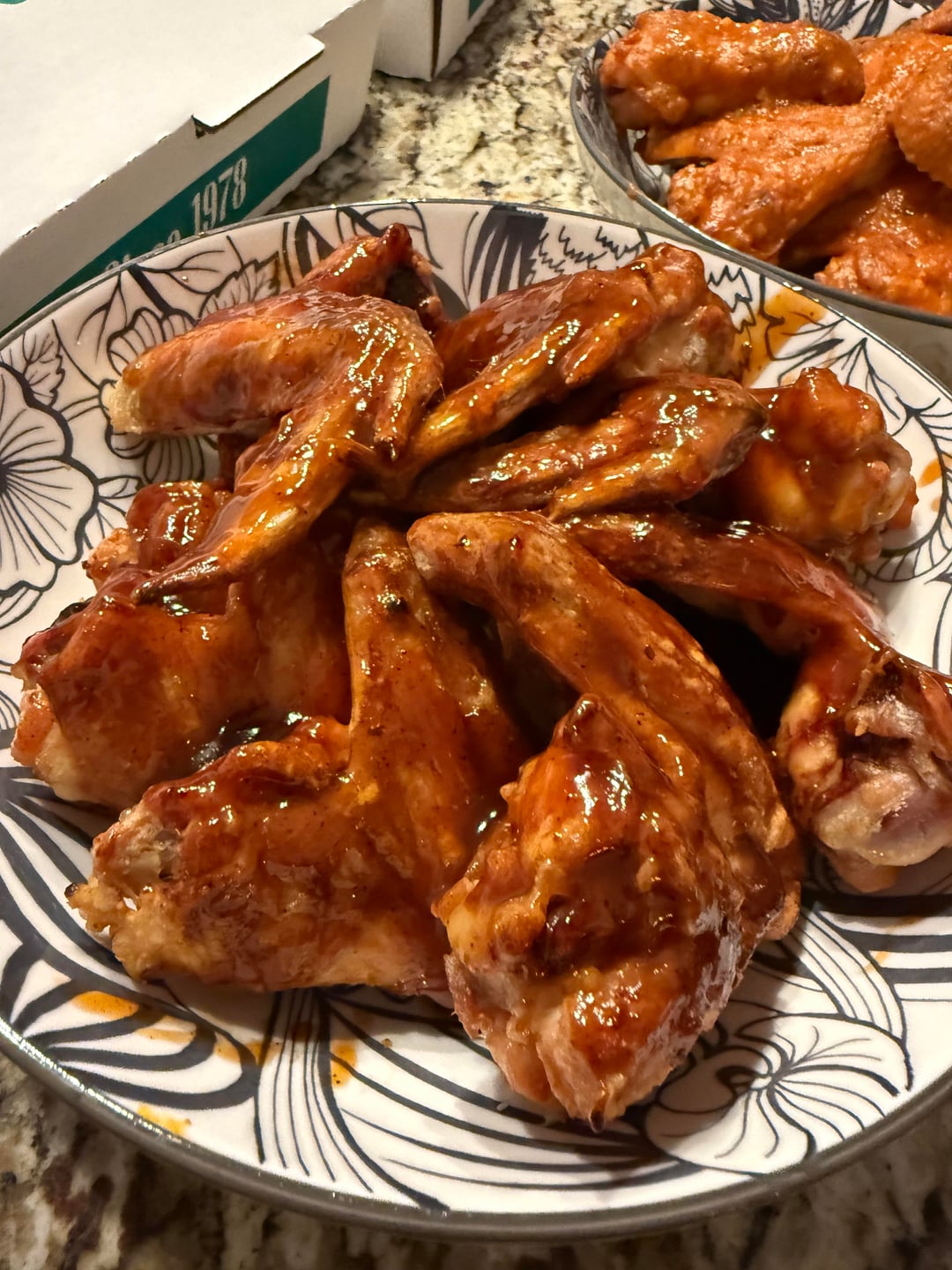 Homemade honey BBQ and homemade Buffalo style sauce. I was told by several people that they are the best Buffalo style wings that they have ever had š„°. True story