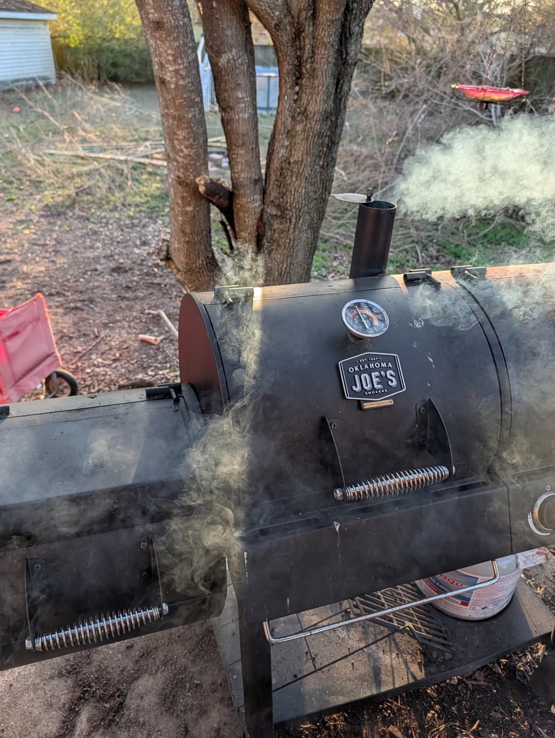 Got some killer deals at the commissary, seasoned with Kinders All purpose, cooking with Kingsford OG and some mesquite acacia wood pellets