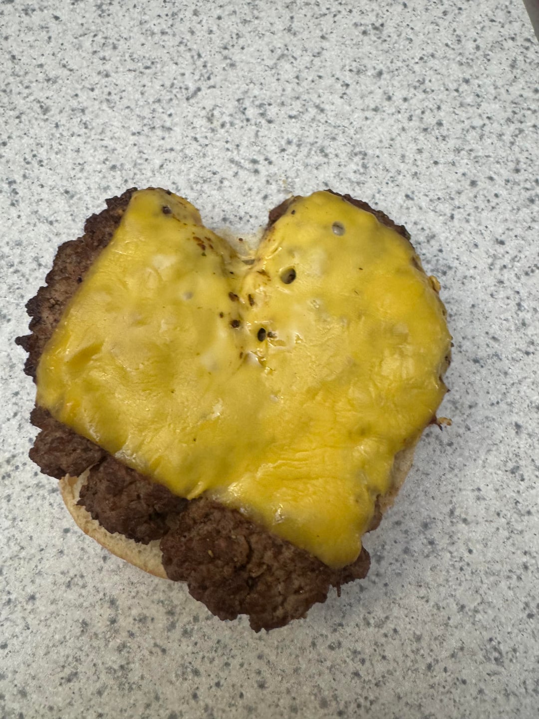 It’s the thought that counts.by ItsThunderCookie 16 Comments jsmeeker 3 weeks ago I think they turned out fine DesignerTeacher5716 3 weeks ago So cute! jeffykins 3 weeks ago Lmao nice Impossible_Rain_3065 3 weeks ago Flip the picture and you got assburgers. ElGrandeRojo67 3 weeks ago Not bad at all. jjmawaken 3 weeks ago Lovely Agitated_Position392 3 weeks ago Looks like the ball sacks people hang off their trucks havedarbdamlin 3 weeks ago Looks like success MonkeyBrains09 3 weeks ago You should have cut the cheese in half and placed it on like a V to cover the meat better shortdude72 3 weeks ago Nice. This turned out great. SalsaChica75 3 weeks ago It’s cute and I love the thought! zoo1514 3 weeks ago Tried and succeeded!! Nice! NewsOdd3064 3 weeks ago Succeeded 38couchstains 3 weeks ago Looks good serve it up whitecastlebites 3 weeks ago Cute! No_Slice_8210 3 weeks ago Maybe if you wanna keep the V better shape it after. Otherwise still looks like a heart.