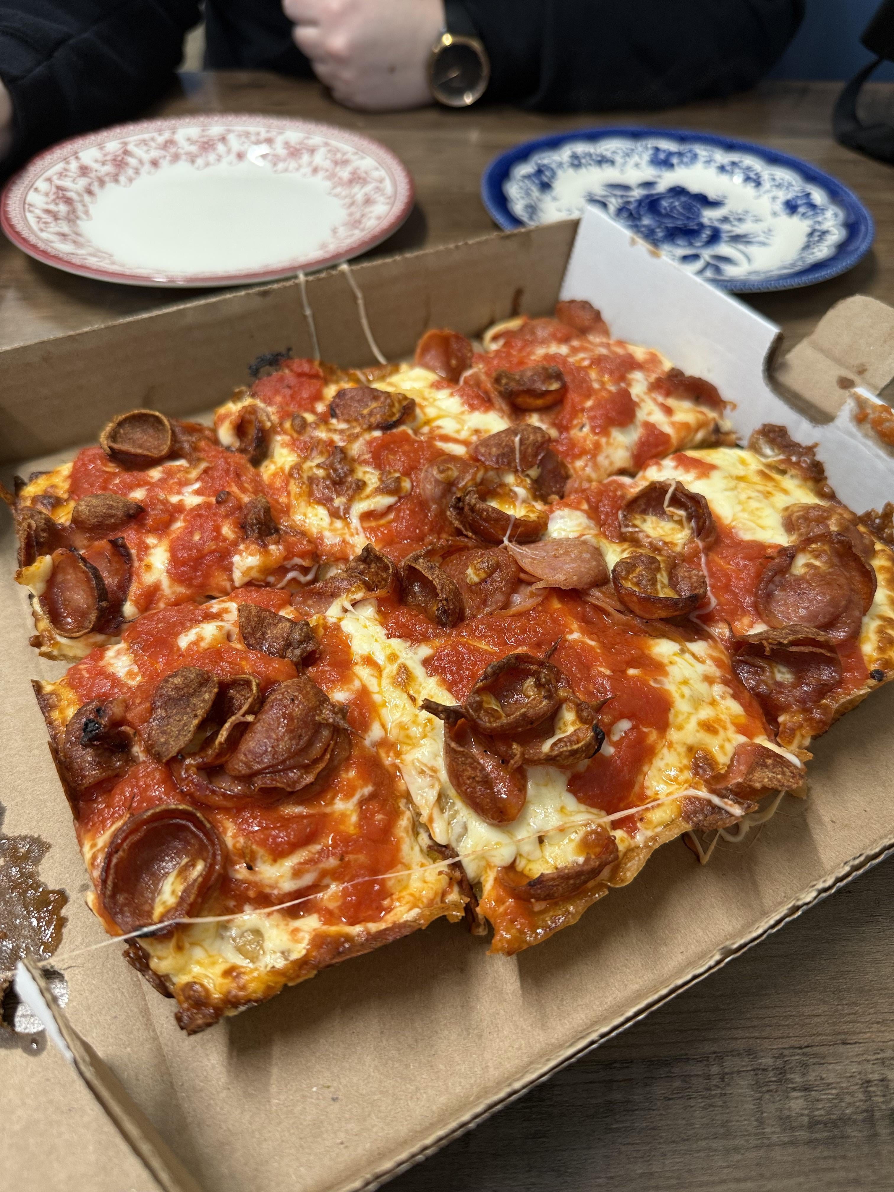 that detroit-style crust hits different, ngl. pepperoni game strong! ��