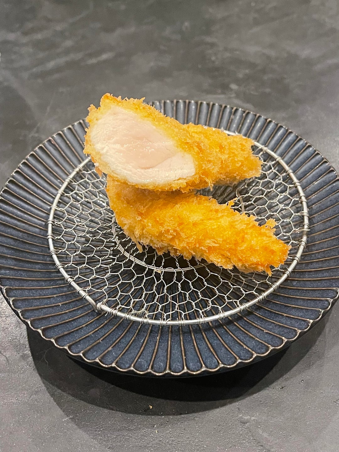 Minced meat cutlet made from a mix of loin and filet, oozing with juiciness.