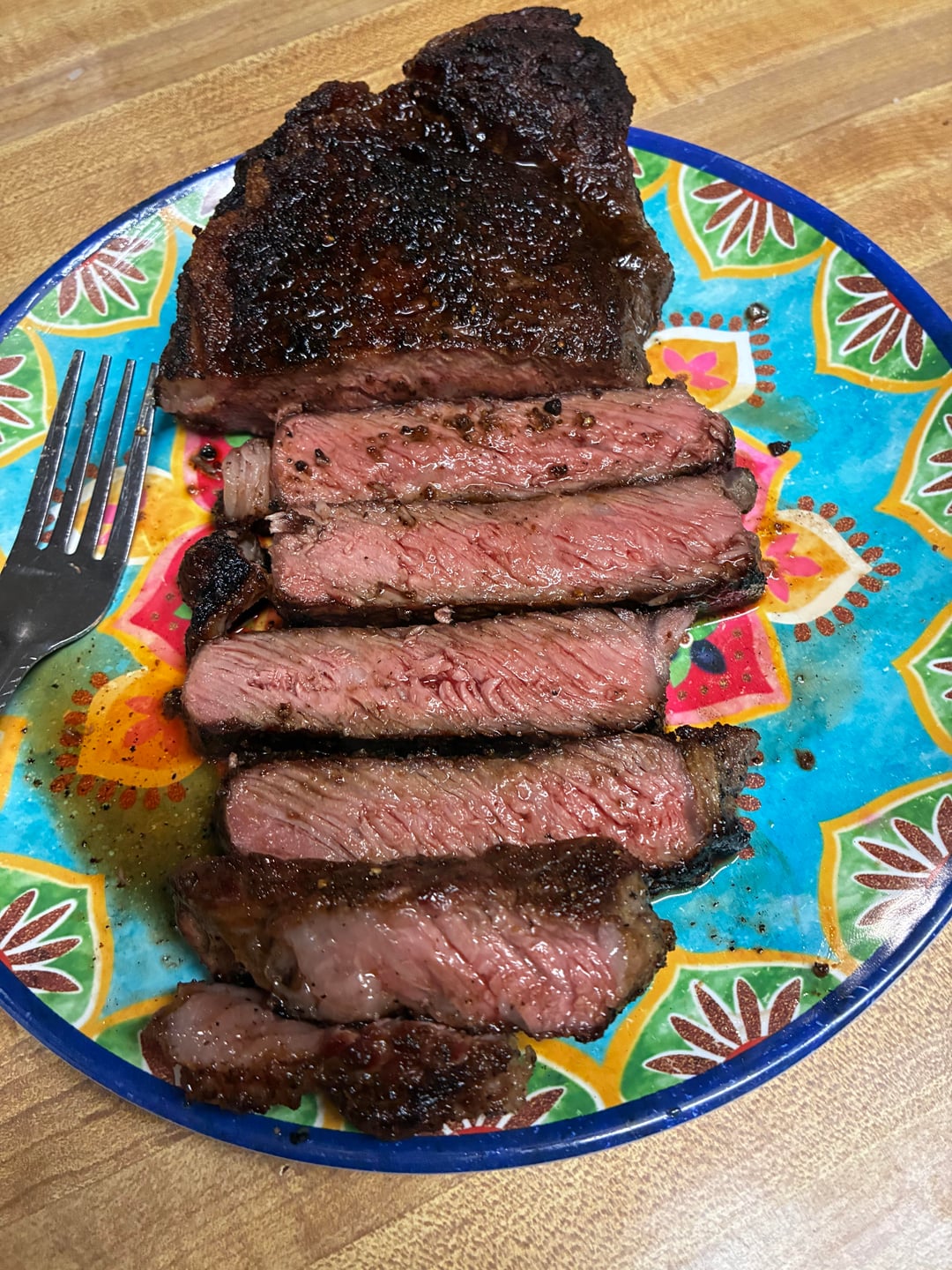Great crust. Still pink and juicy. That is damn near perfect. 9.5 outta 10. Well done.