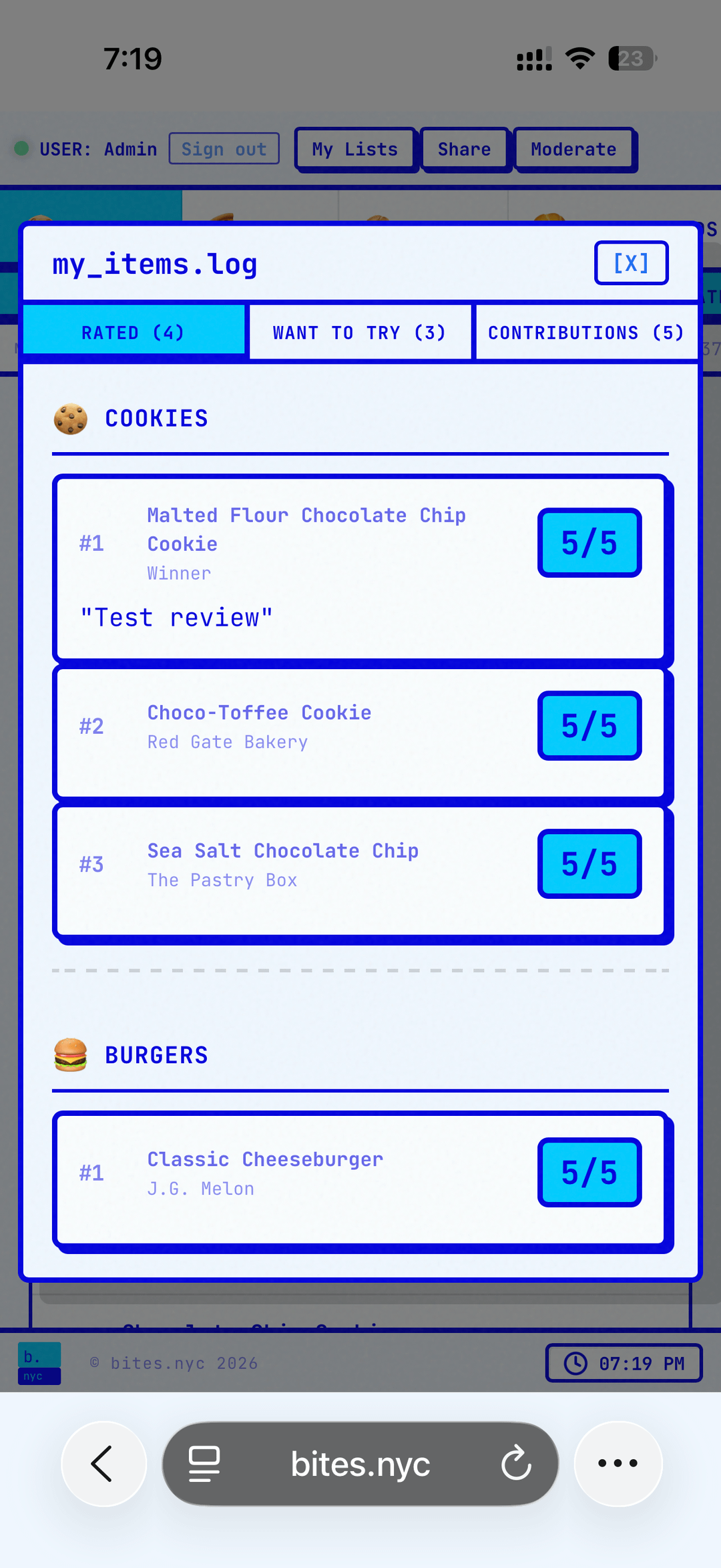 What you can do: Rate items 1–5, browse rankings by neighborhood and category, see reviews, locations, share your lists with friends. Right now it covers cookies, bagels, burgers, pizza, and baked goods (coffee coming soon). Every ranking is purely community-driven – no ads, no sponsored content, no editorial picks.