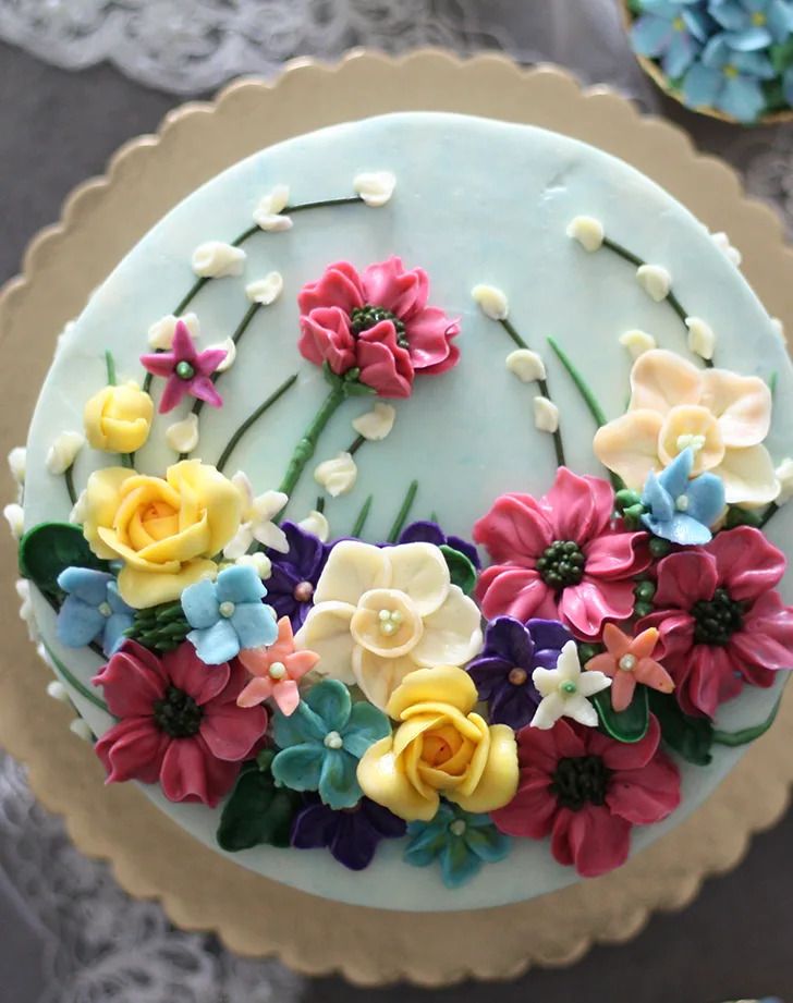 Decorators’ buttercream is similar to American buttercream but made with shortening instead of butter. This means it’s stiff enough for piping well-defined borders and flowers (unlike meringue-based buttercreams) and takes coloring well (unlike yellow, buttery frostings). What it lacks in flavor it makes up in versatility.