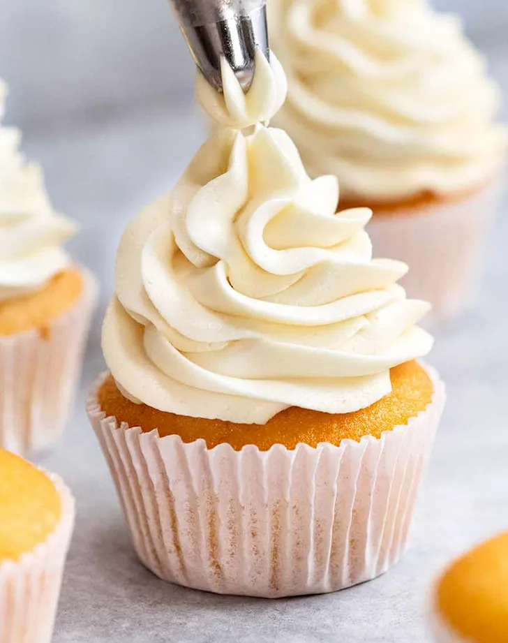 Also known as condensed milk buttercream, this two-ingredient wonder is silky, fluffy and, if you ask us, underrated. It’s made by whipping butter and sweetened condensed milk together into an ivory frosting that’s extremely smooth and ideal for piping.