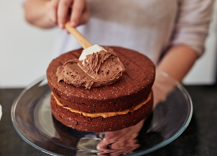 If you’ve never, ever made frosting, start with American buttercream. It’s impossible to mess up—just combine butter, confectioners’ sugar, cream, salt and your desired flavoring, then frost away. That said, this type of frosting can lean toward cloying, so pair it with a less sweet base to offset the sugar rush.