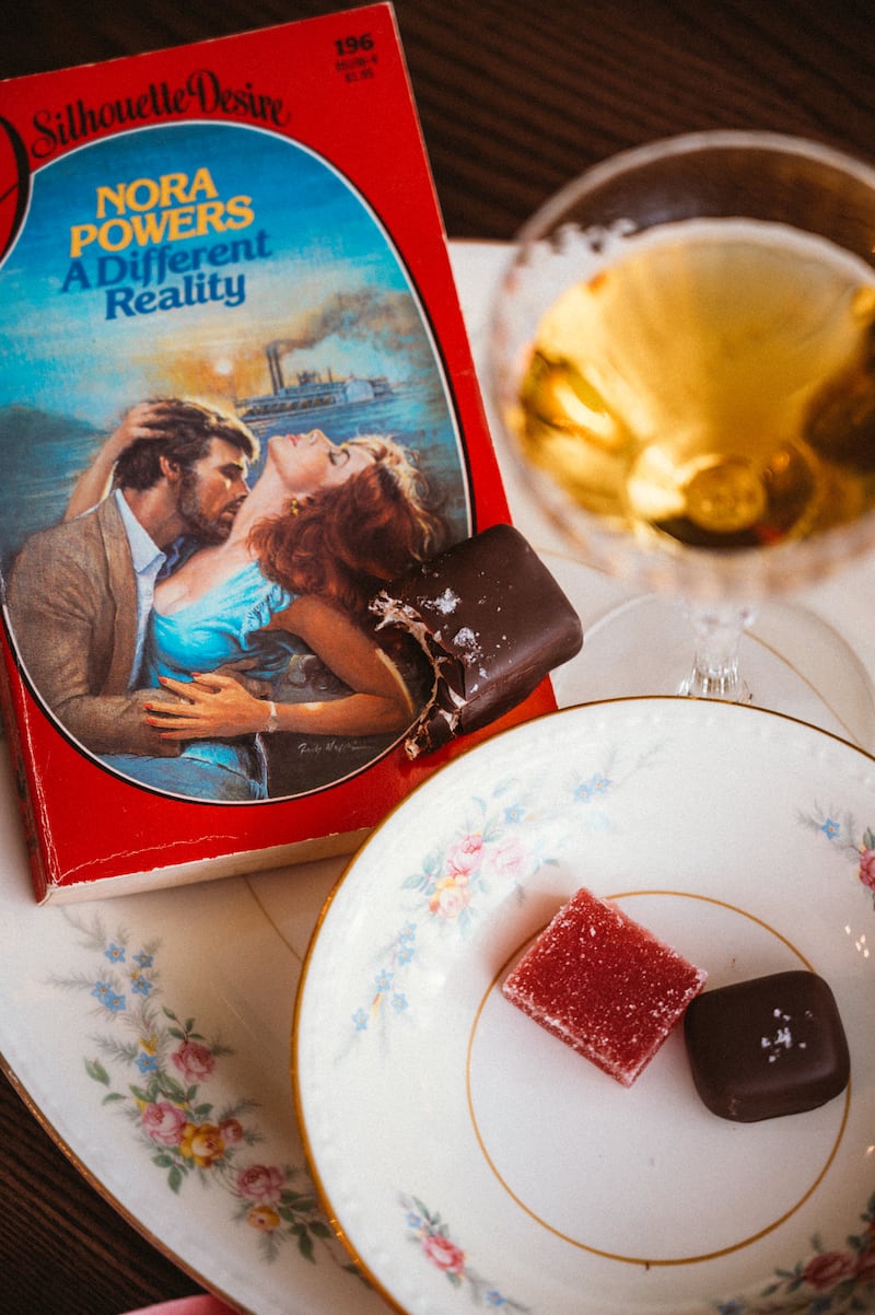 Speaking of bookshelves, though: The meal’s finish is where those twin vibes of upscale and down to earth really come together. If you order the Happy Ending from Bar Nouveau’s dessert menu, you get a glass of a dessert wine or digestif, a small plate of elegant bonbons and a trashy romance novel. Now, I’m well aware that romance as a genre has improved and diversified from the years when some of us were sneaking copies of older relatives’ paperbacks; today’s romance authors and characters are more diverse, and the storylines dramatically less hetero in focus (plus, sometimes there’s hockey). In this context, however, when I say “trashy,” I mean it; these are old-school smut in the all but extinct mass-market format.