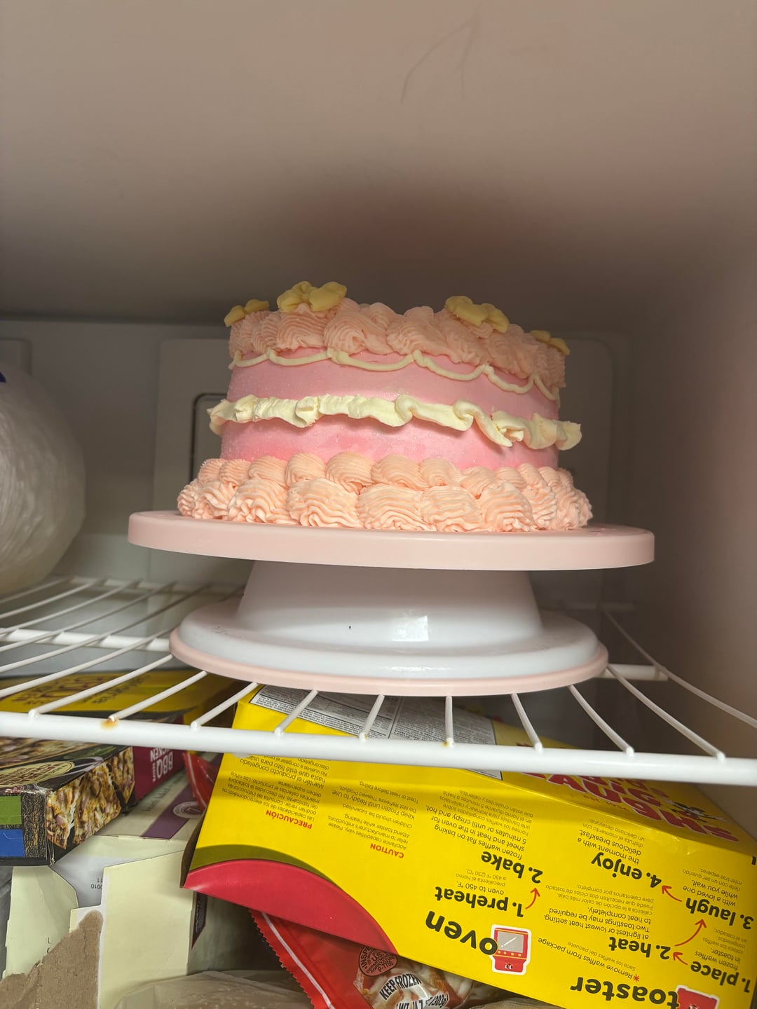 And yes, I am going to cover that cake! I read that you can pop it in the freezer for a minute to harden the buttercream so, you don’t mess it up putting a cover over it.