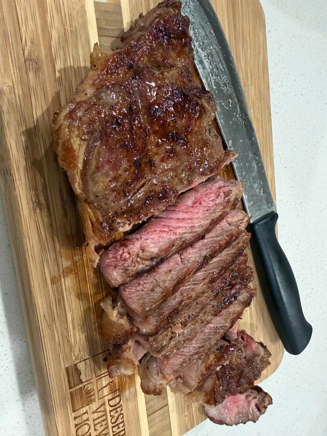 Tried a reverse sear and finished on a Blackstone. I usually prefer my iron skillet because it gets hotter, but this still came out absolutely juicy and tasty.