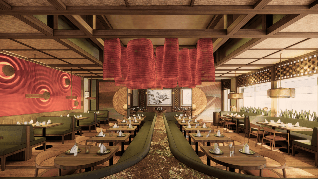 The 6,000-square-foot space will seat more than 200 guests and feature indoor and outdoor dining, a private dining room known as the Tea Room and a craft cocktail bar. It will also include Suzunone, a 12-seat Edo-style omakase counter offering a traditional sushi experience.