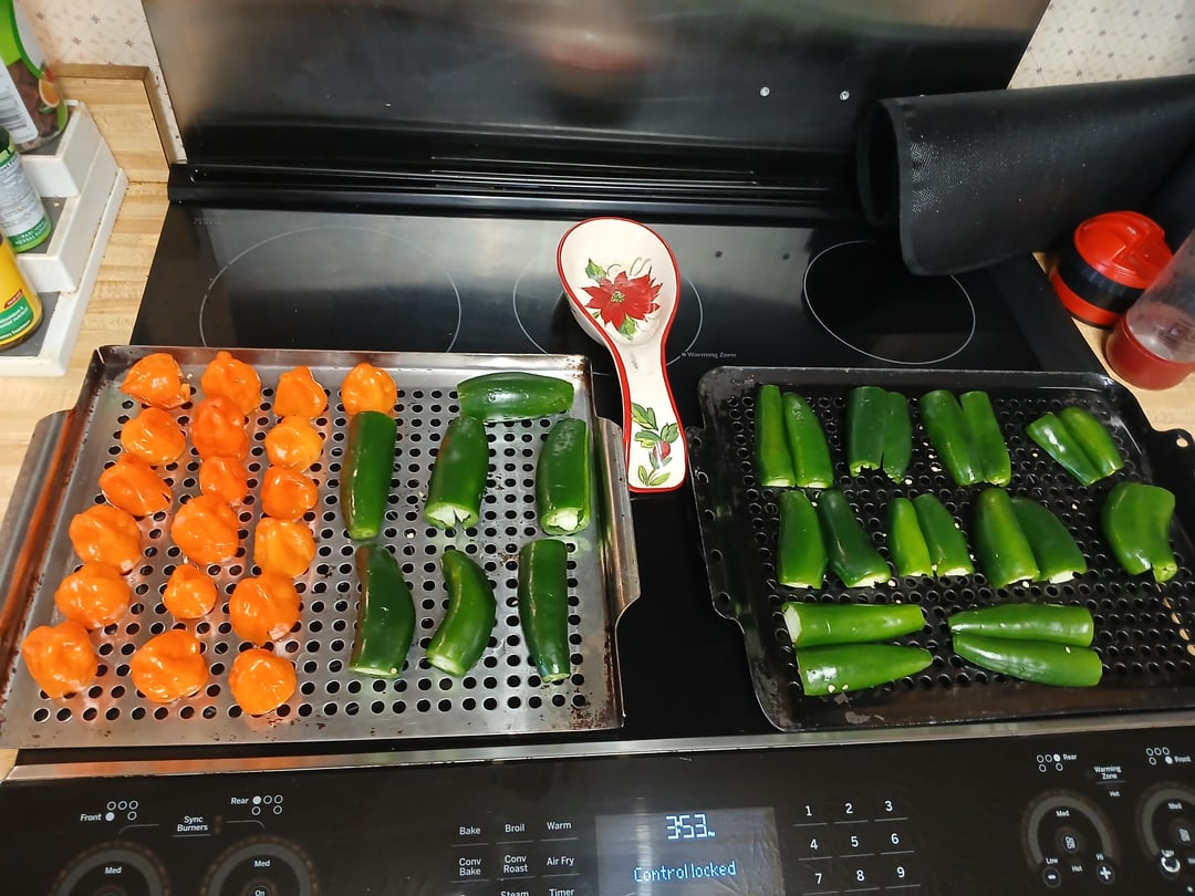 The recipe is on the last picture, there’s a slight variation with 1.5lbs of jalapeños and half the habaneros smoked, 3 sweet onions instead of shallots, some frozen mango, extra garlic, adjusted vinegar and sugar to taste. Sweet and spicy, spreadable sauce. Great on sandwiches or for dipping.