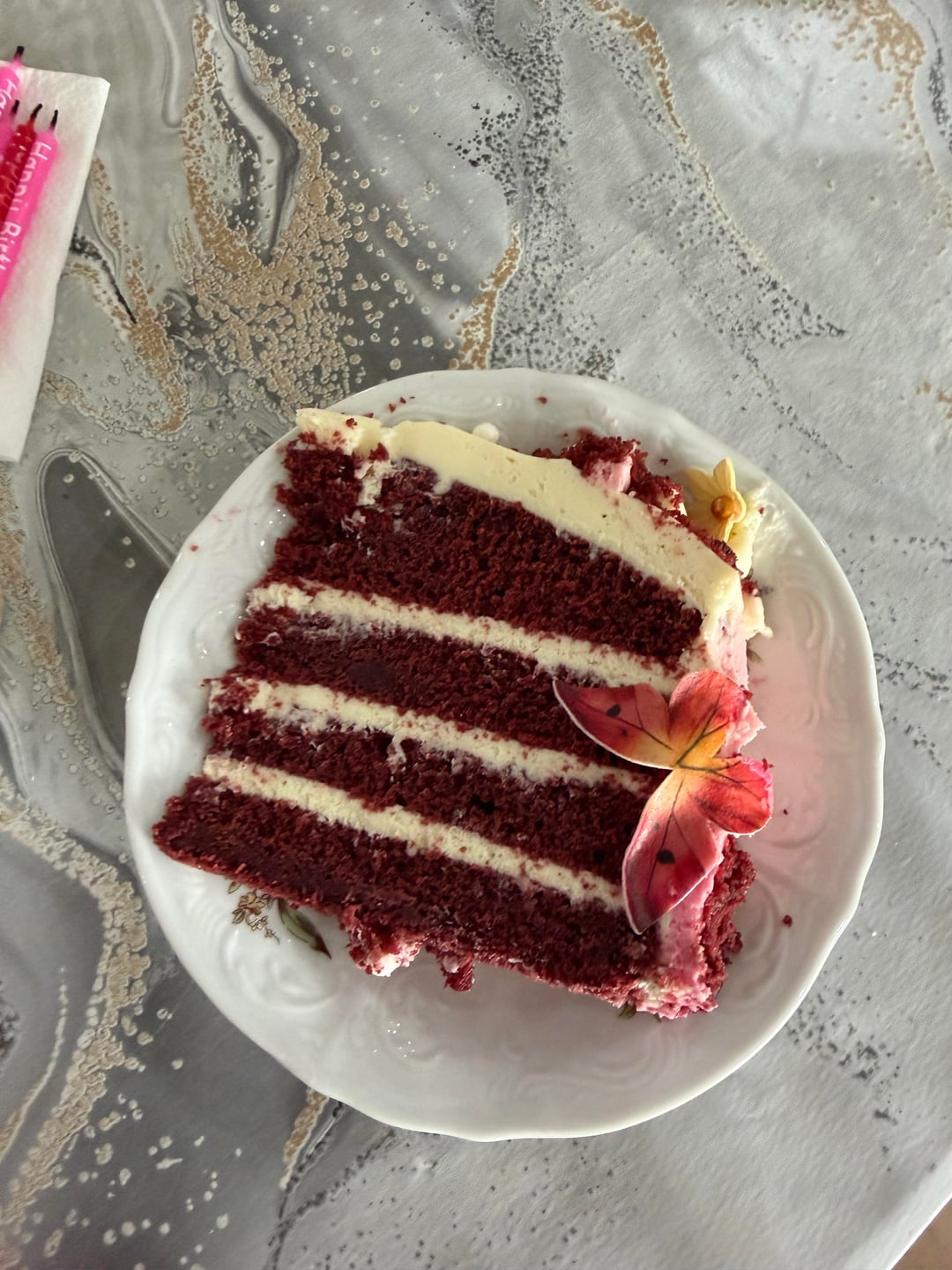 For the velvet cake I used this: https://thescranline.com/red-velvet-cake/