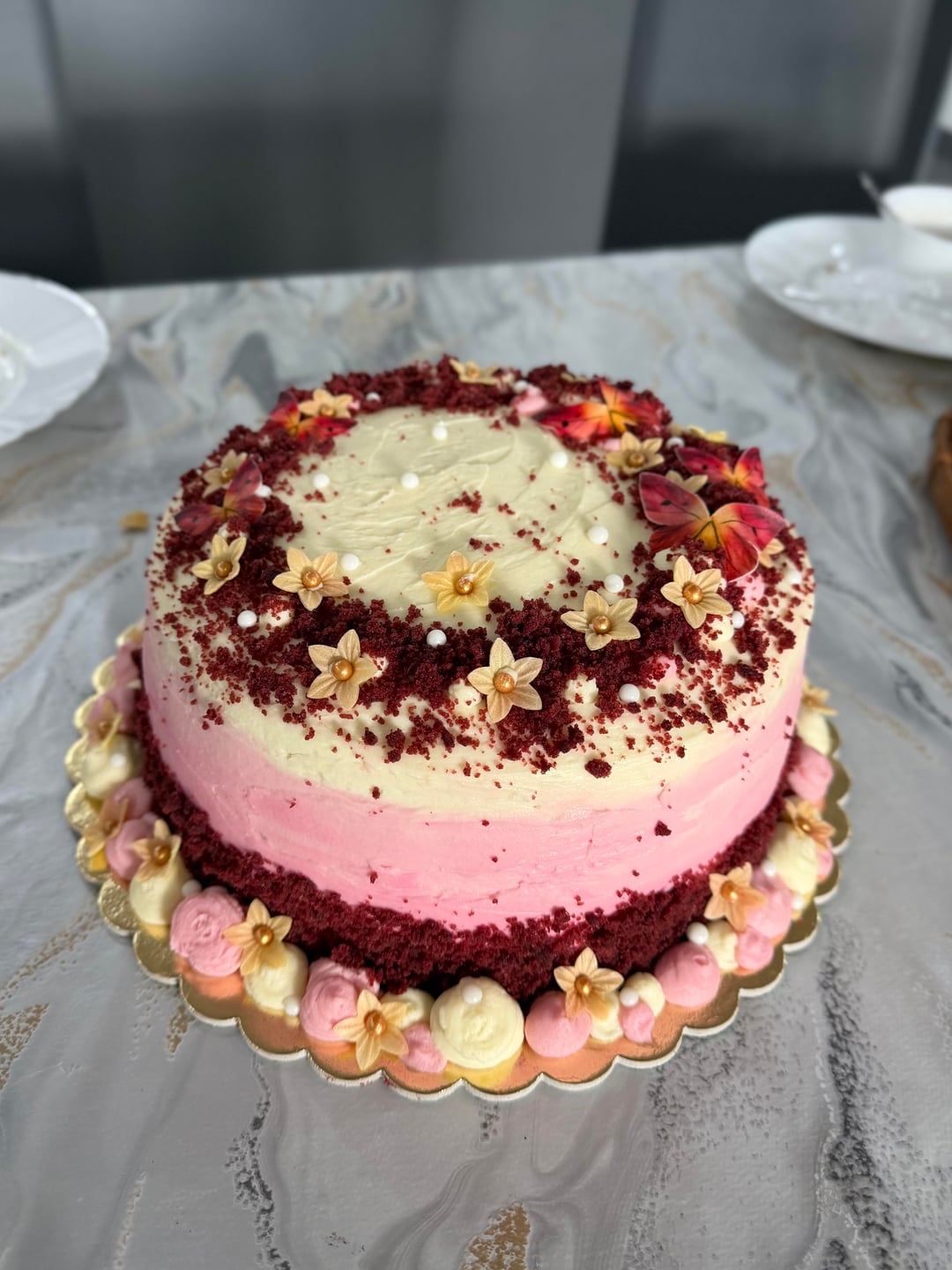 If you need the colour directions too lmk. I bake as a hobby whenever there’s a birthday – it’s my way of gifting. But I am no professional. This is the FIRST TIME IVE PIPED ANYTHING including the filing and frosting. And this is the first time ive done the ombré.