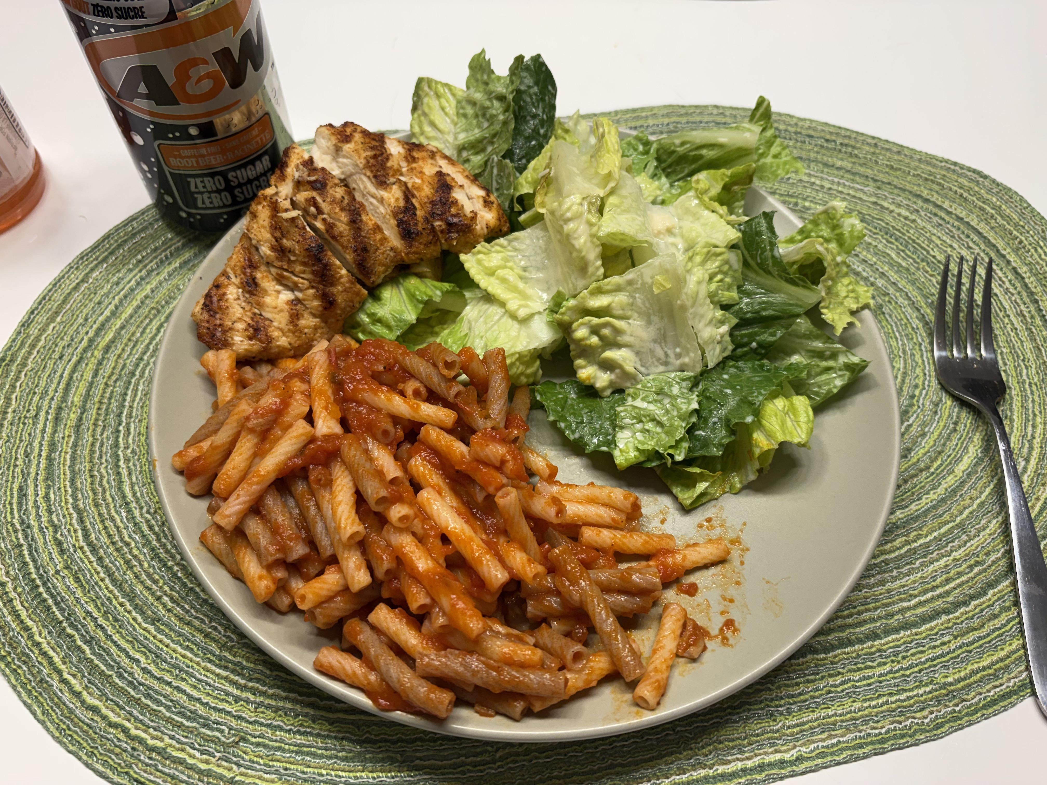 658 calories for din. Don’t like breakfast so only have yogurt and berries. Chicken breast, carrots and hummus for lunch.
