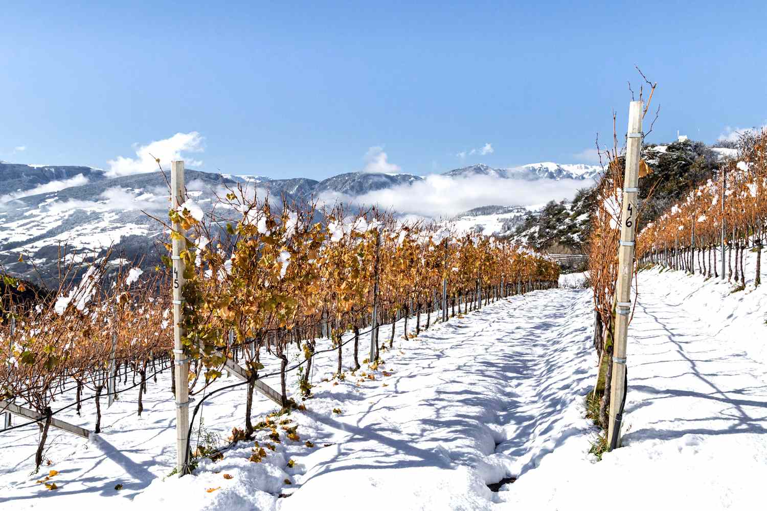 Located in the Alto Adige wine region of Italy, producers like Peter Zemmer rely on melted glacier snow to fill the local natural springs, which ensures a water supply to drip-irrigate the vines during the warmer months. Snow can also help insulate the vines against frigid temperatures further up the vineyard slopes, which can drop down to 5°F in winter.