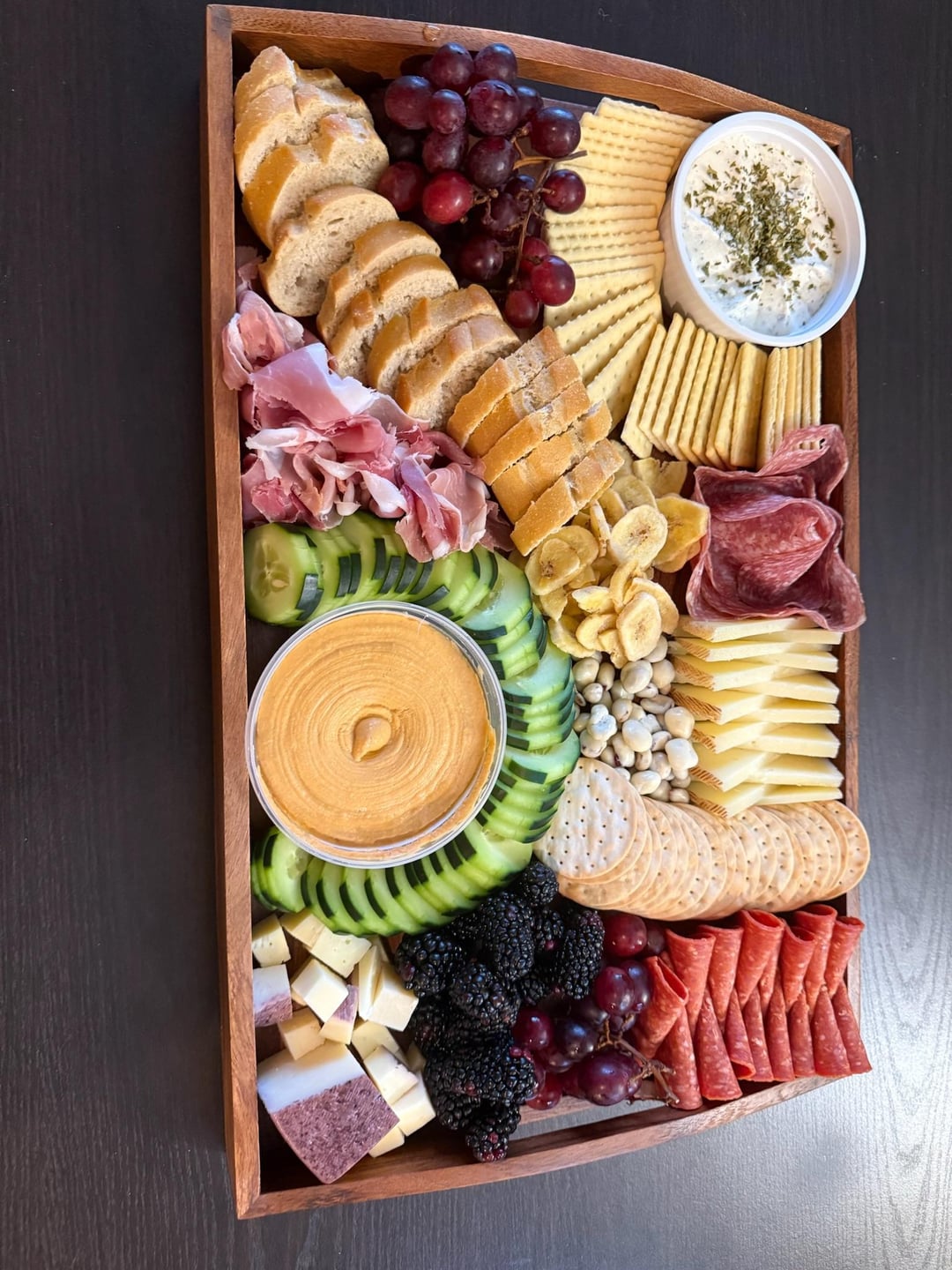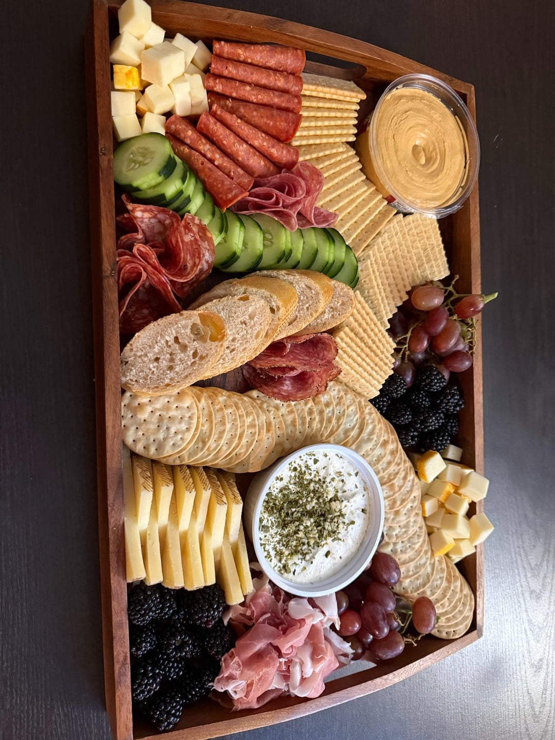 Don’t put the crackers on a board that small. More color. More variety. Nicer cheeses and meats.