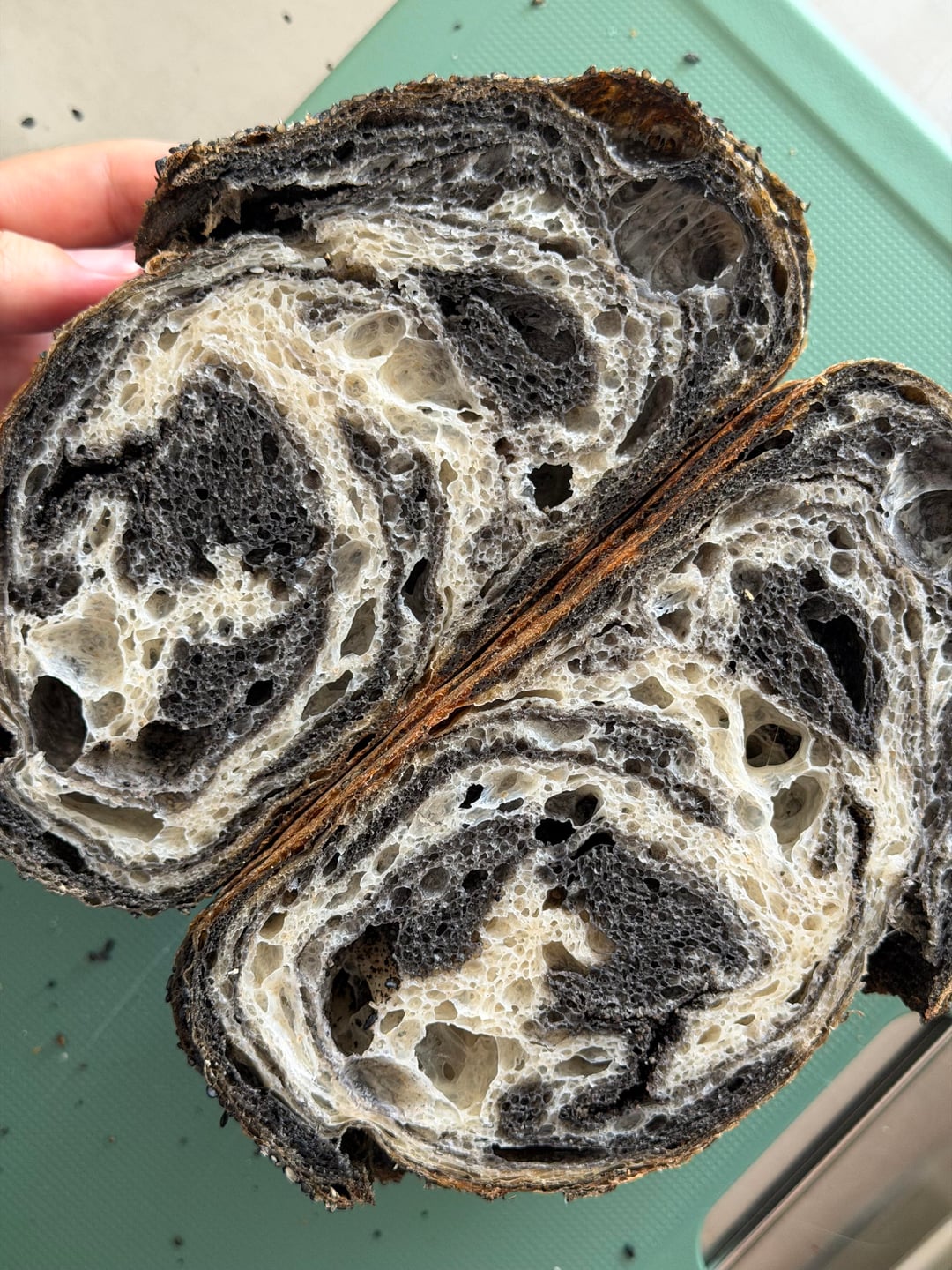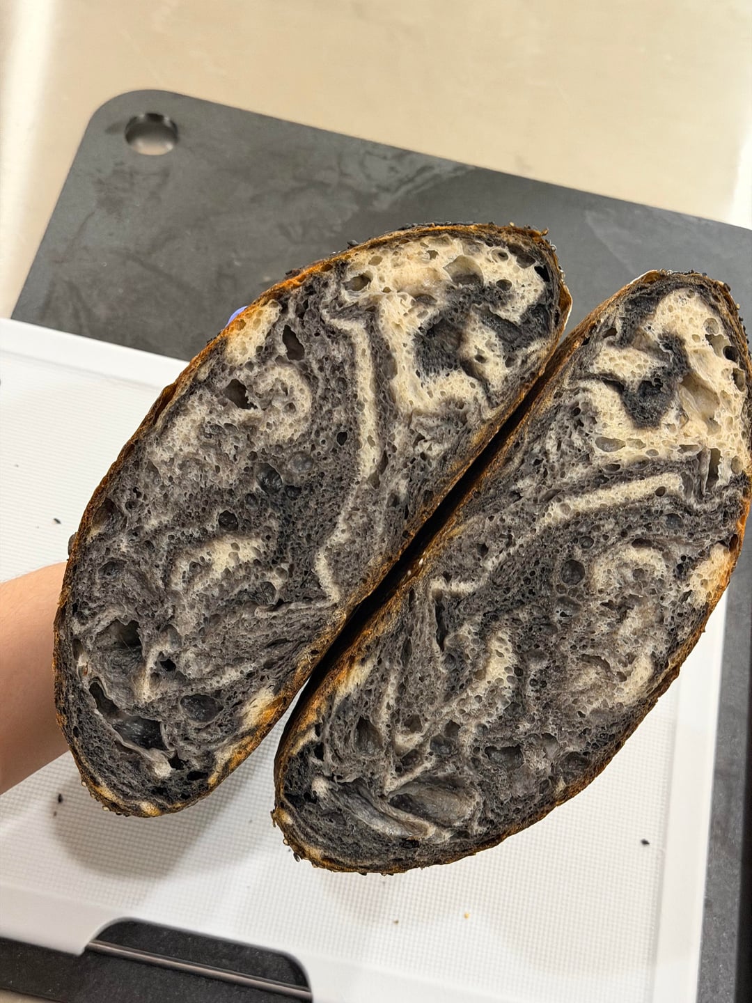Black Sesame Sourdough based on the recipe from Sourdough Brandon here https://sourdoughbrandon.com/black-sesame-sourdough-bread/. I made two minor adjustments: