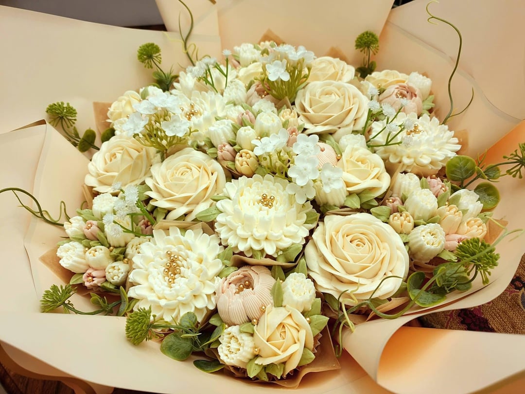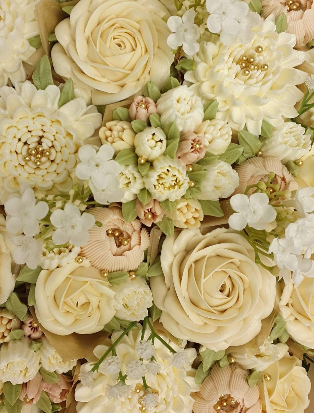 We made a 19 cupcake buttercream flower bouquet for a wedding