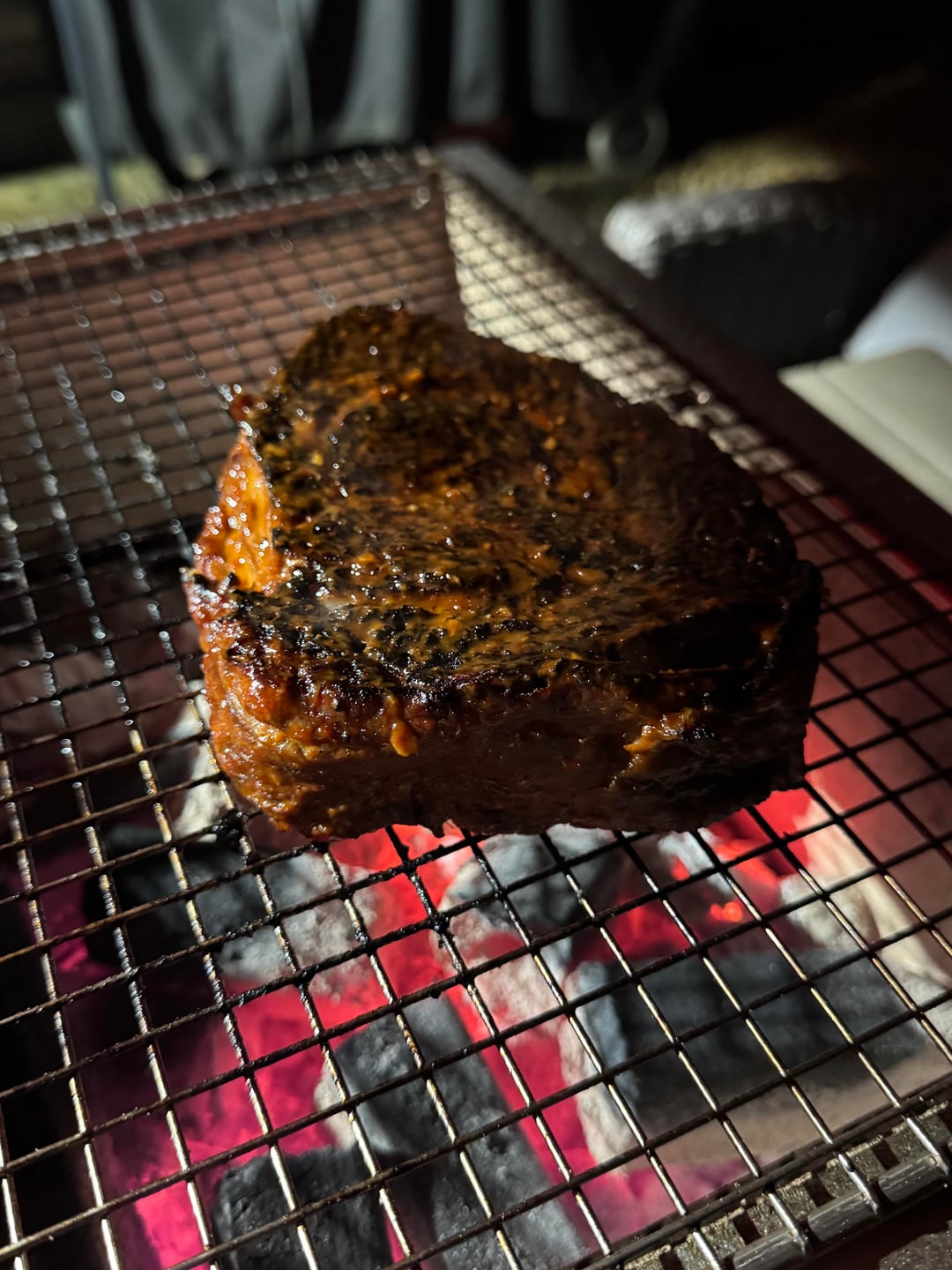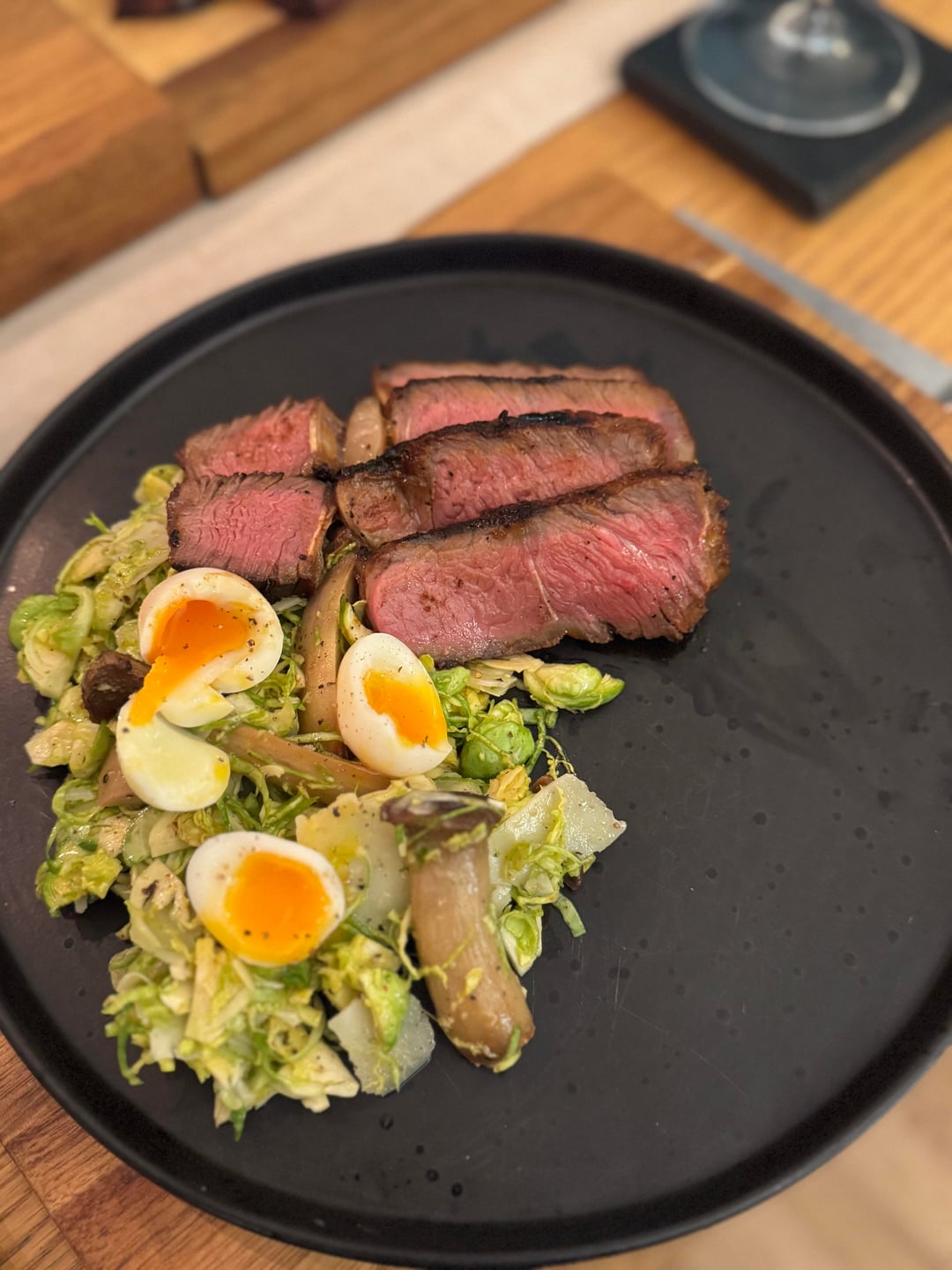 She preferred no bone in. This week’s effort Steak in gochujang with a raw sprout, oyster mushroom and quail egg salad.