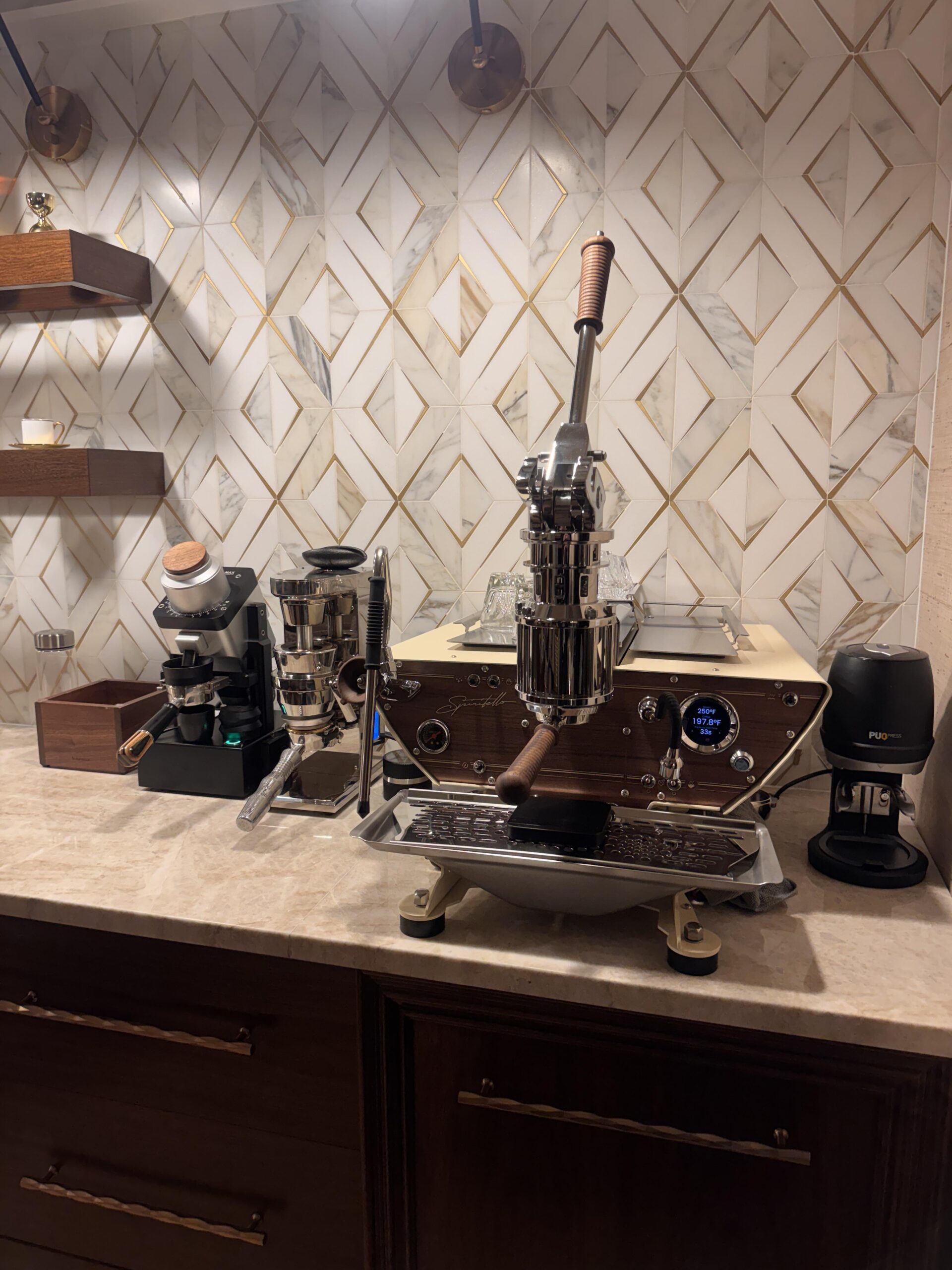 I work in my fifth generation family business. I’m lucky enough to go to work every day with my father and my younger brother (all of us are fanatics about coffee/ making espresso and we pooled our money together to splurge on this). The other day we received our Kees Van Der Westen Spiritello after waiting close to four months for it and it has been an absolute dream. The thing is built like a tank and the shots are super consistent. This thing paired with the Titus DRM is a complete monster. We’re hiring if anyone is interested 😂😂
