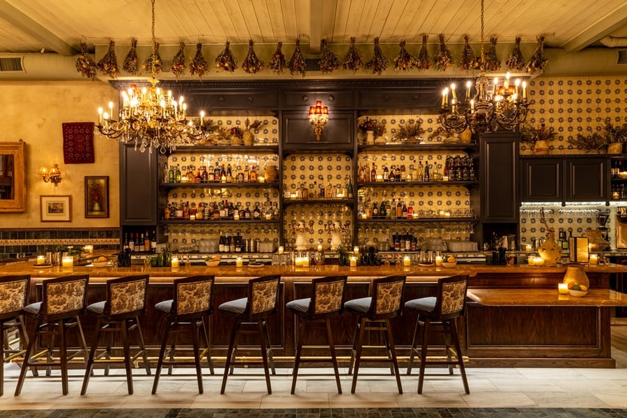 Co-founder Robert Kronfli personally designed and sourced every element of the restaurant, incorporating patinated antiques to create a warm and inviting atmosphere. The space is layered with antique and vintage rugs, lighting, furnishings, and objects that make it feel timeworn and steeped in history.