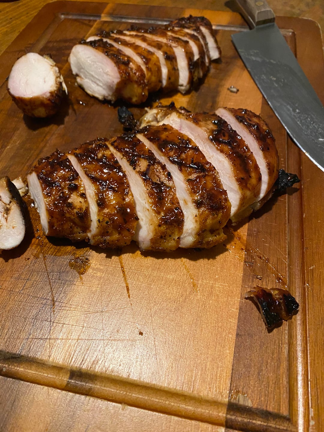 Smoked these breasts at 325 for about 40 minutes. The breasts were marinated in buttermilk, chili garlic sauce & the rub. After marinating I dried off the chicken & added my rub. The rub was 1 part Steak Rub (I make it), 1 part Cajun Rub (I make it), 1 part Lemon Pepper, 1 part Raw Sugar. I used a mop throughout the process which consists of equal parts red wine, cider, & cider vinegar along with Worcestershire, pickled peppers, onions, garlic, salt & sugar; after being cooked the mop is strained. The barbecue sauce I used on the chicken towards the end was just 2 parts mop & 1 part ketchup. Super juicy & tender. Would definitely recommend 🍗