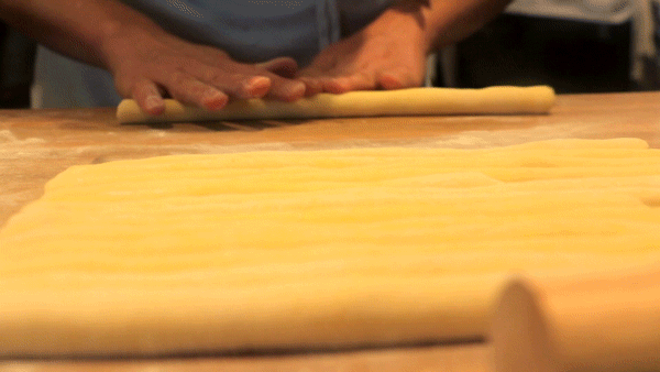 Chef Jessica Essen rolls dough for gnocchi. Tavernetta on 16th Street by Union Station. (Kevin J. Beaty/Denverite)