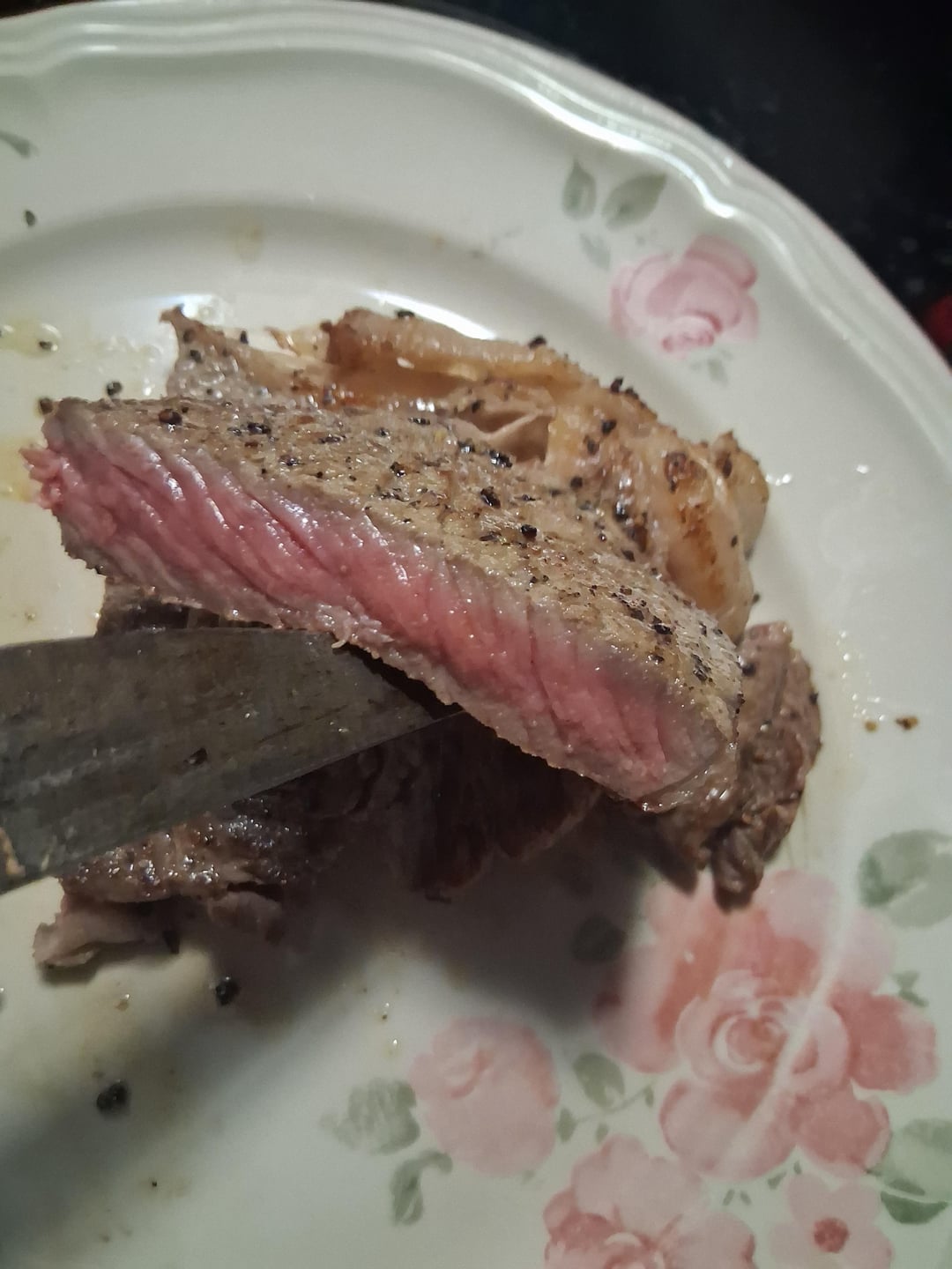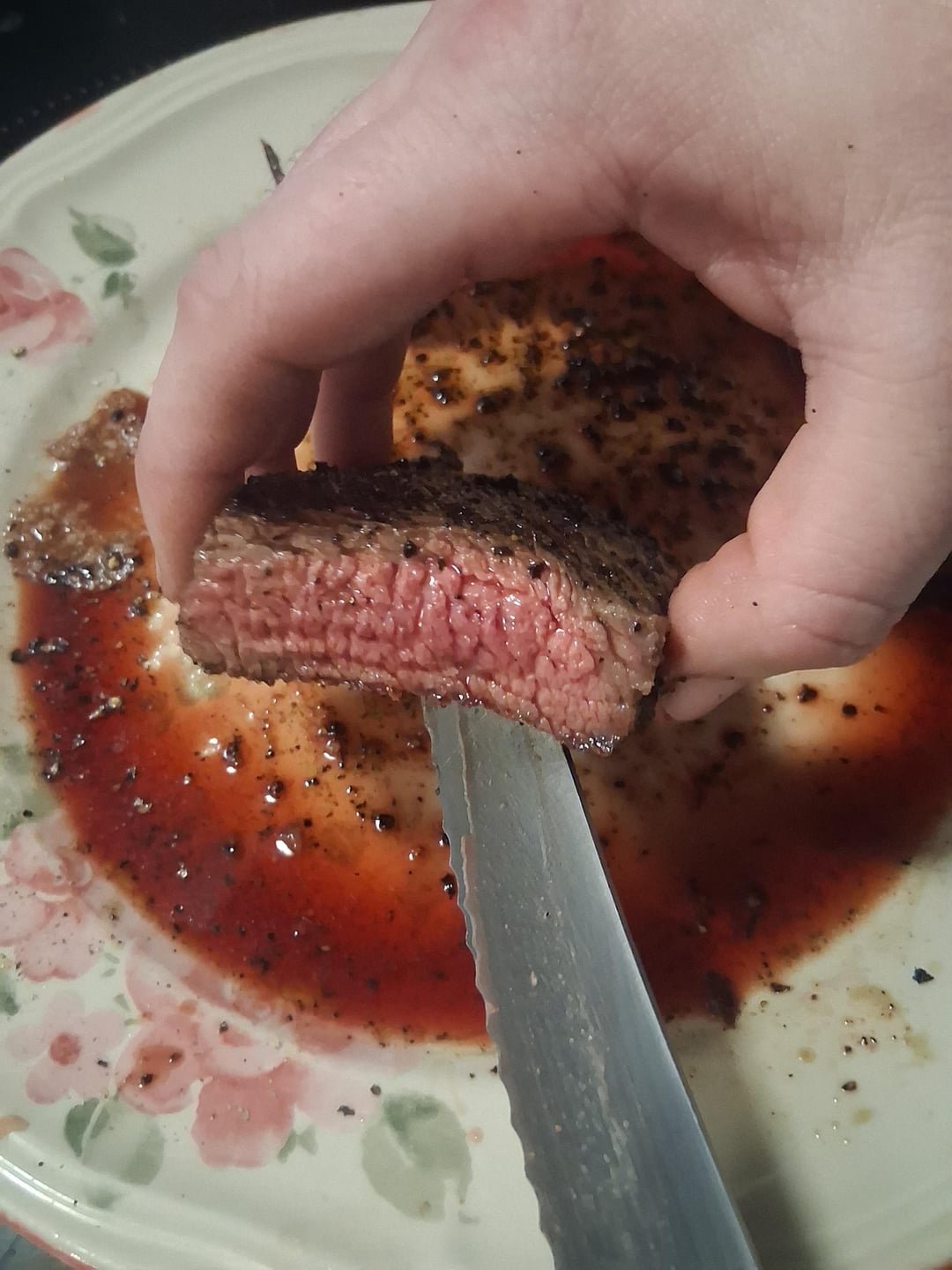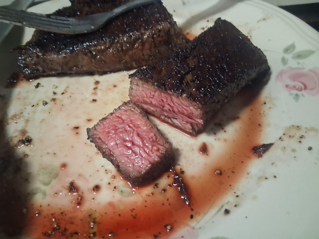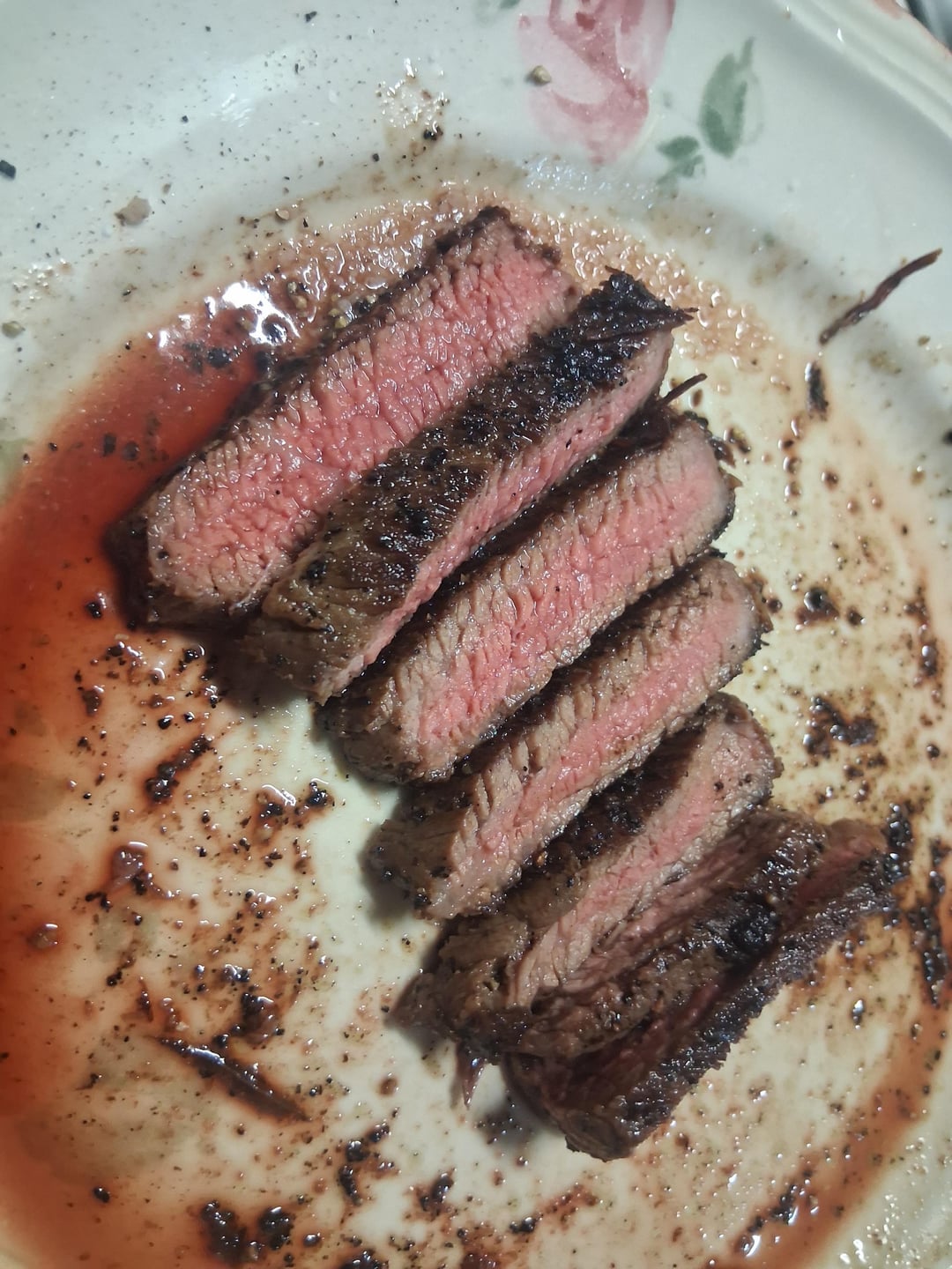 The thinner strip steak was lacking a good sear I admit, but of the more enjoyable of the steaks I've posted here.