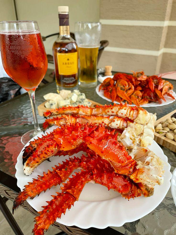 Wine glass and brandy are Russian, so likely Russian King crab (vs Alaskan fishery).