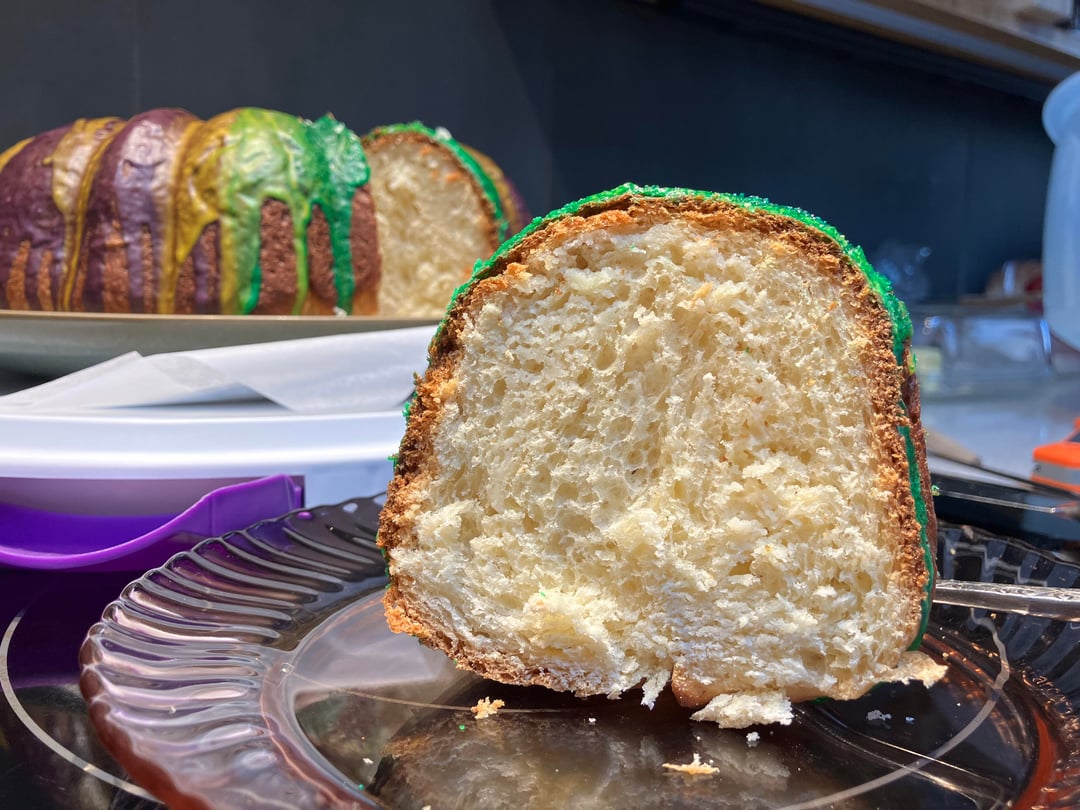 Recipe by King Arthur: https://www.kingarthurbaking.com/recipes/mardi-gras-king-cake-recipe