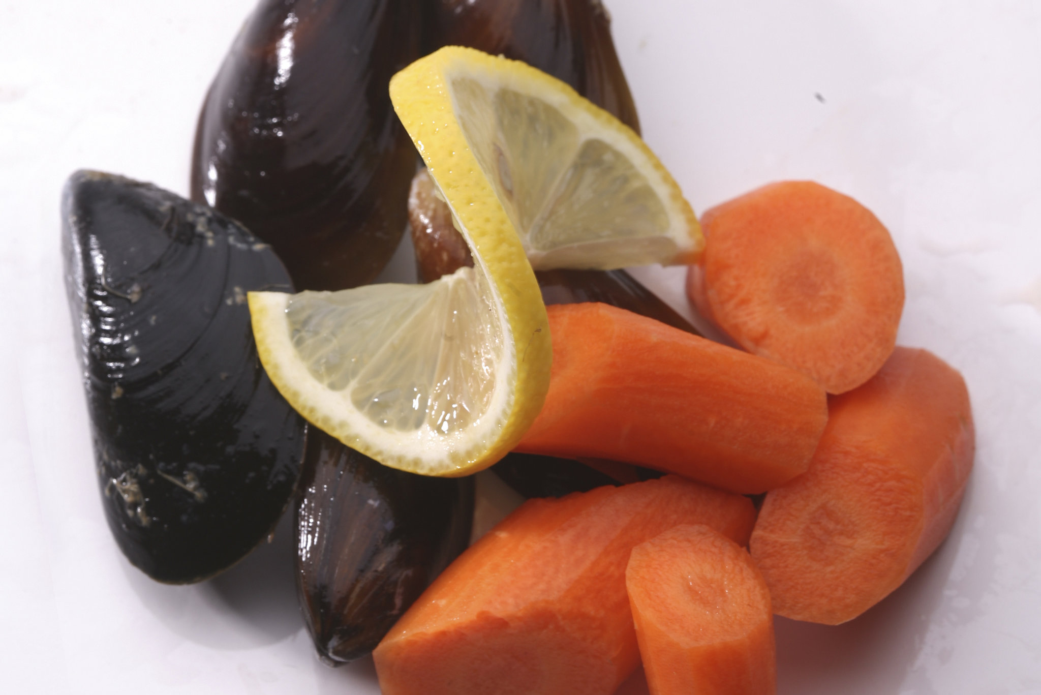 This is a Moroccan-style carrot soup, which can be served either hot or cold. Subtle sweetness (carrots), acidity (lemon), spice (cumin), fragrance (cilantro) and a touch of salinity (mussels) mirror the very aromas and flavor notes that the best of these German spätlese riesling wines deliver . The soup can also be made without the mussels, but not without the cilantro.