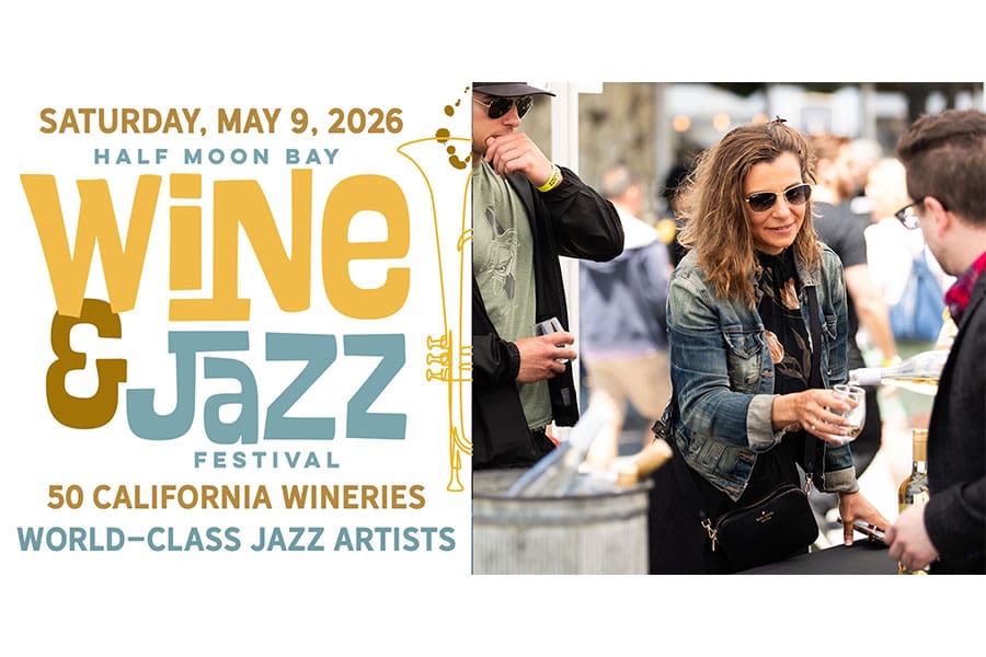 The event takes place on Saturday, May 9, 2026 from 12-5 p.m. on Half Moon Bay’s historic Main Street. Wine and music lovers will enjoy tastings from a wide selection of California wineries, renowned jazz artists, local food, and a craft beer & cider garden.