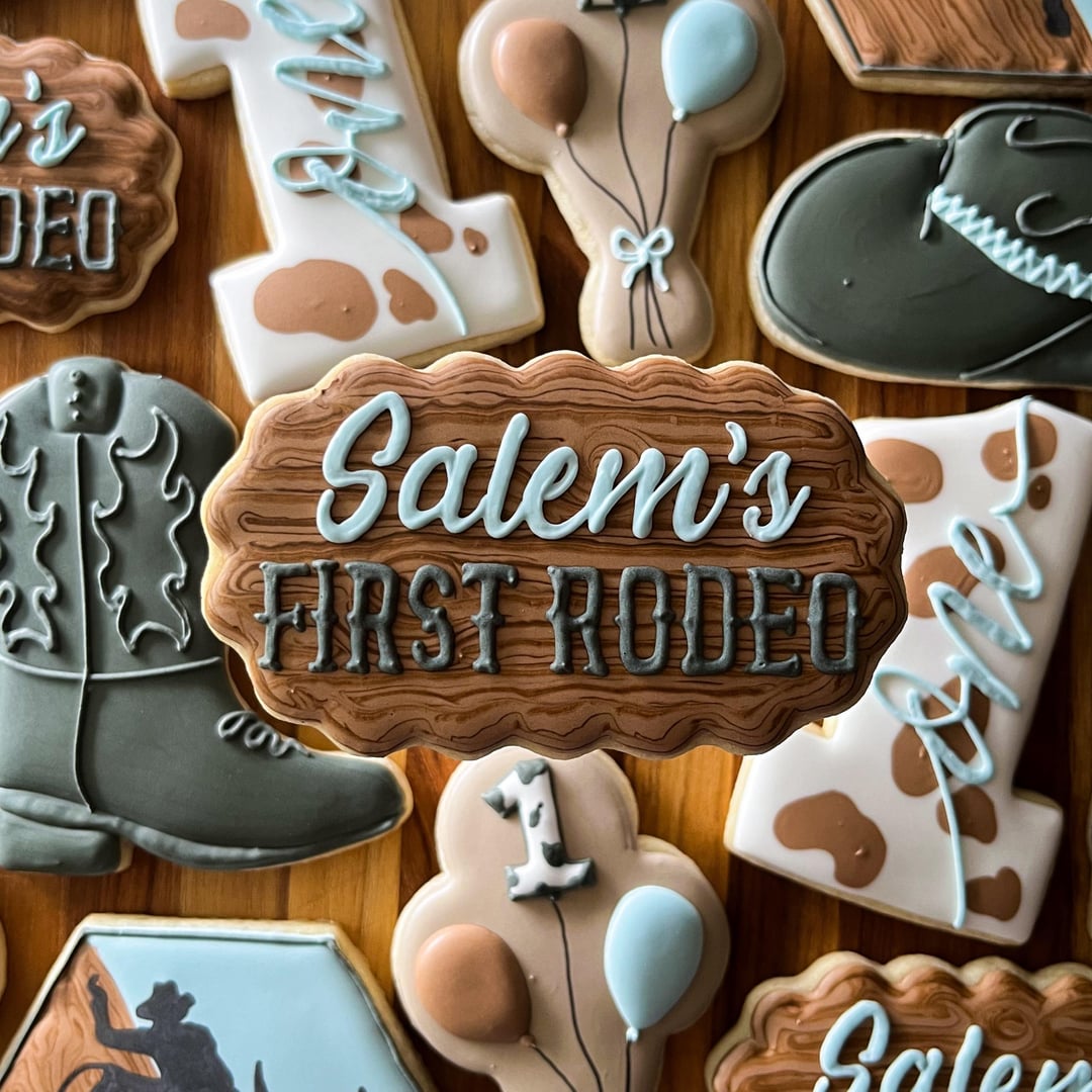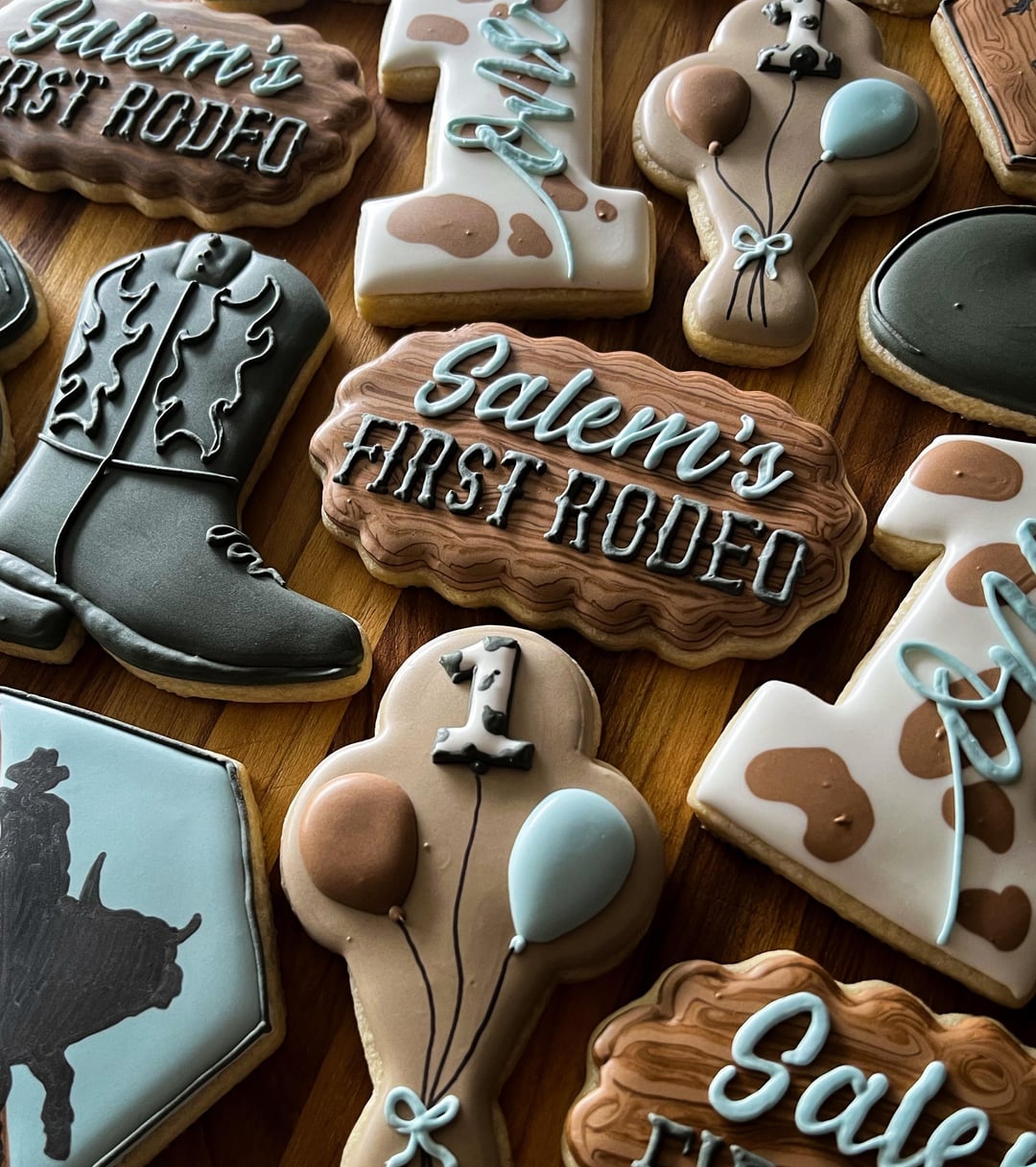 Did this little one’s baby shower cookies and now I get to do his first birthday cookies! Love when things come full circle like this.