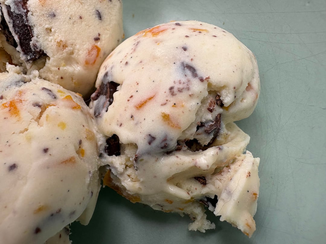 Grand Marnier. I love boozy ice cream and I always exceed the recommended amount to add, because if I can’t taste it, what’s the point in adding it? So I add to taste, after the base has chilled overnight, but then i let it chill again for several more hours before churning.