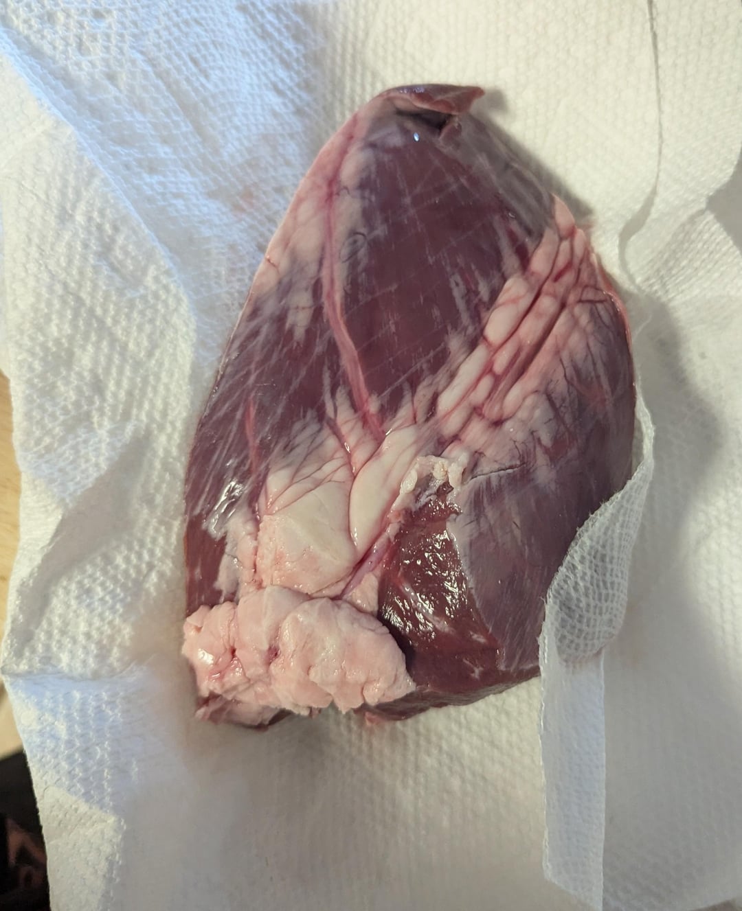 Open it up and slice the veins out. Iโ€™ll try to make it easy. There are two main compartments in the heart. Find them from the top, slice on either side of the divider, lay it open, remove divider cutting parallel to the meat, clean veins out cutting parallel to the meat, flip it, trim fat off using that same technique. Done. Slice it up or cube it up for country fried heart bites. Shewww come on now. Save fat for tallow give the veins to the dog. Also, itโ€™s awesome made into jerky.. seriously really good stuff.