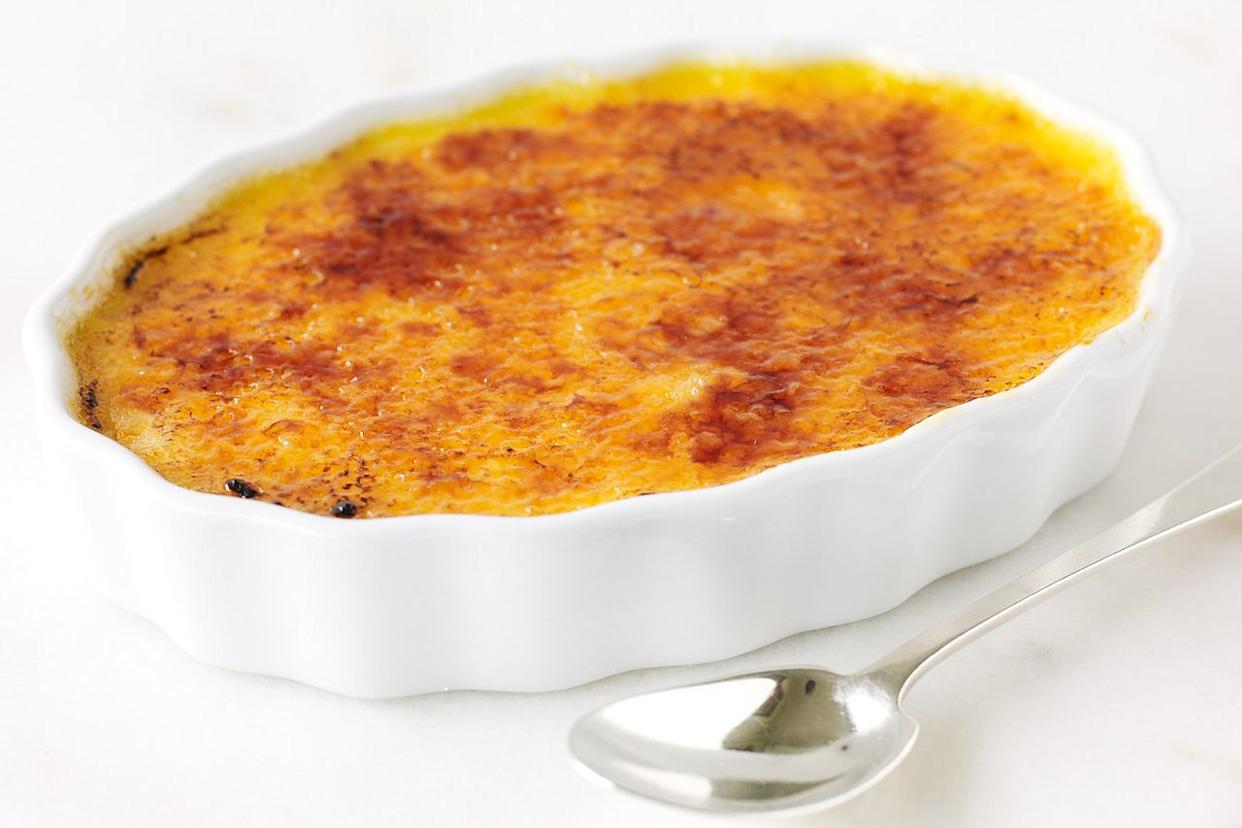 The contrast of the crisp brûléed sugar topping with the creamy custard underneath is one of the many reasons we love this sublime combination. Even better, this rich, make-ahead dessert requires just four ingredients: heavy cream, egg yolks, sugar, a vanilla bean, and a broiler or kitchen torch to caramelize the crust.