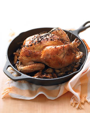Roasted chicken meets sweet, soft, nutty garlic in this French classic. It sounds overpowering, but the 40 cloves are just right—and using Martha’s two-bowl technique makes peeling them a snap.