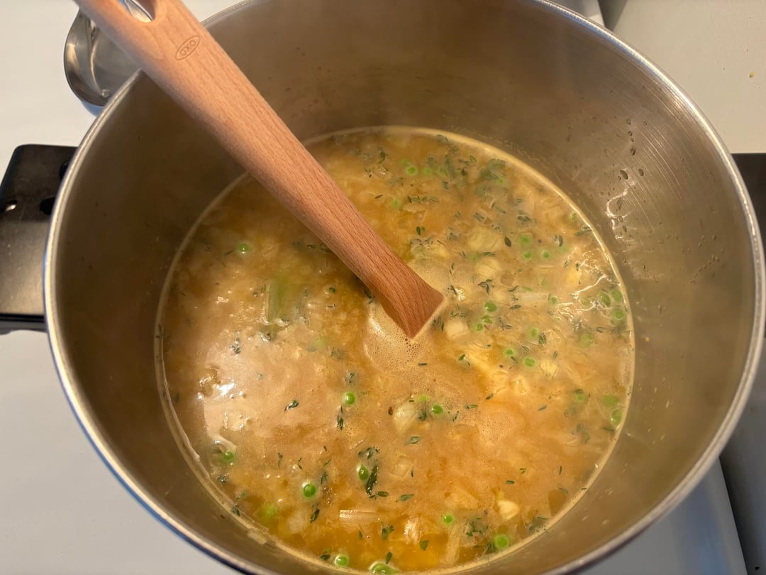 – 2 celery ribs, sliced ¼ inch thick (used peas)