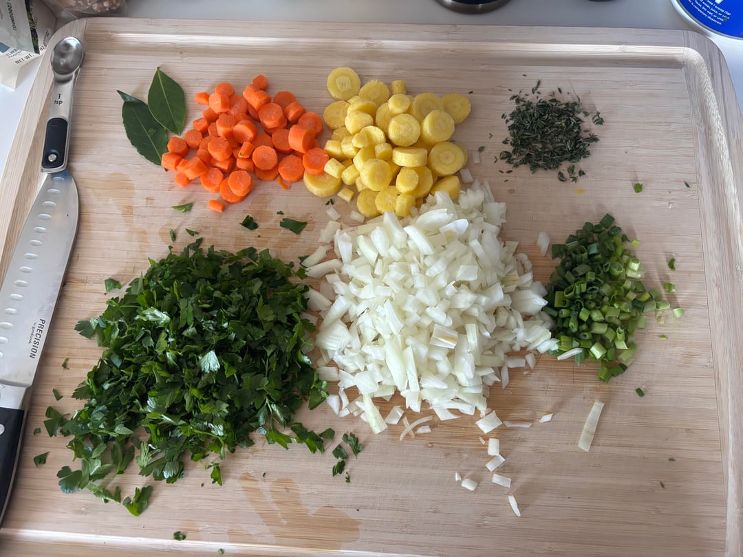 fitsomah 3 weeks ago Creamy curried cauliflower soup – 1 head cauliflower (2 pounds)– ¼ cup extra-virgin olive oil, divided, plus extra for serving– 1 leek, white and light green part only, halved lengthwise, sliced thin, and washed thoroughly– 1 small onion, halved and sliced thin– 1½ teaspoons table salt– 1½ tablespoons grated fresh ginger– 1 tablespoon curry powder– 4½ cups water– ½ cup canned coconut milk– 1 tablespoon lime juice– 2 scallions, sliced thinChickpea noodle soup – 2 tablespoons vegetable oil (I used olive oil)– 1 onion, chopped fine– 3 carrots, peeled and sliced ¼ inch thick– 2 celery ribs, sliced ¼ inch thick (used peas)– ¼ teaspoon pepper– 3 tablespoons nutritional yeast– 2 teaspoons minced fresh thyme or ¾ teaspoon dried– 2 bay leaves– 6 cups vegetable broth– 2(15-ounce) cans chickpeas, rinsed– 2 ounces (½ cup) ditalini pasta (used Banza shells)– 2 tablespoons minced minced fresh parsleyBoth from the book America’s Test Kitchen: The Complete Plant-based cookbook.