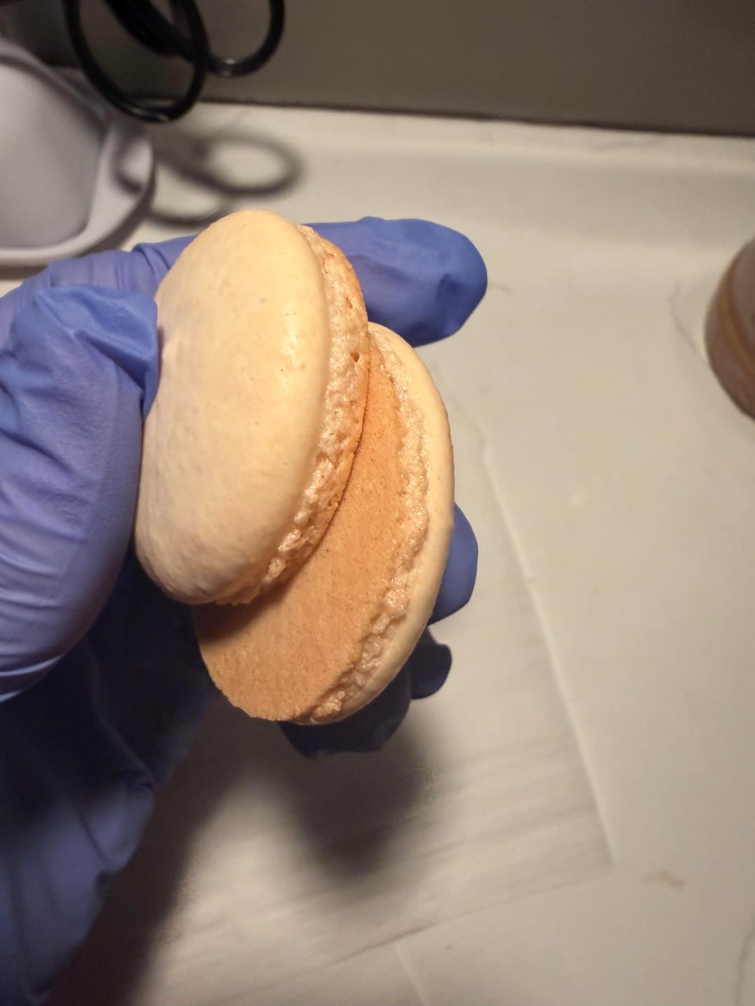 Cookie came out much better as I baked at 300 for 15 min vs 325. Not as hollow. Chewy but not sticky. Need to work on my piping for sure. Excited to try them tomorrow. Cheerz!