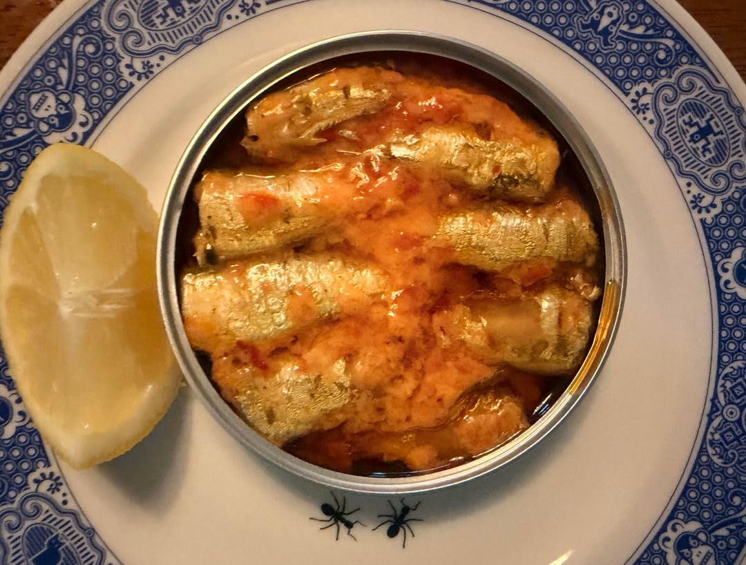 I’d been saving this one. ABC brand small sardines in brava sauce. Absolutely top notch. Too expensive to be an everyday tin, but perfect for a gift or a lil celebration.