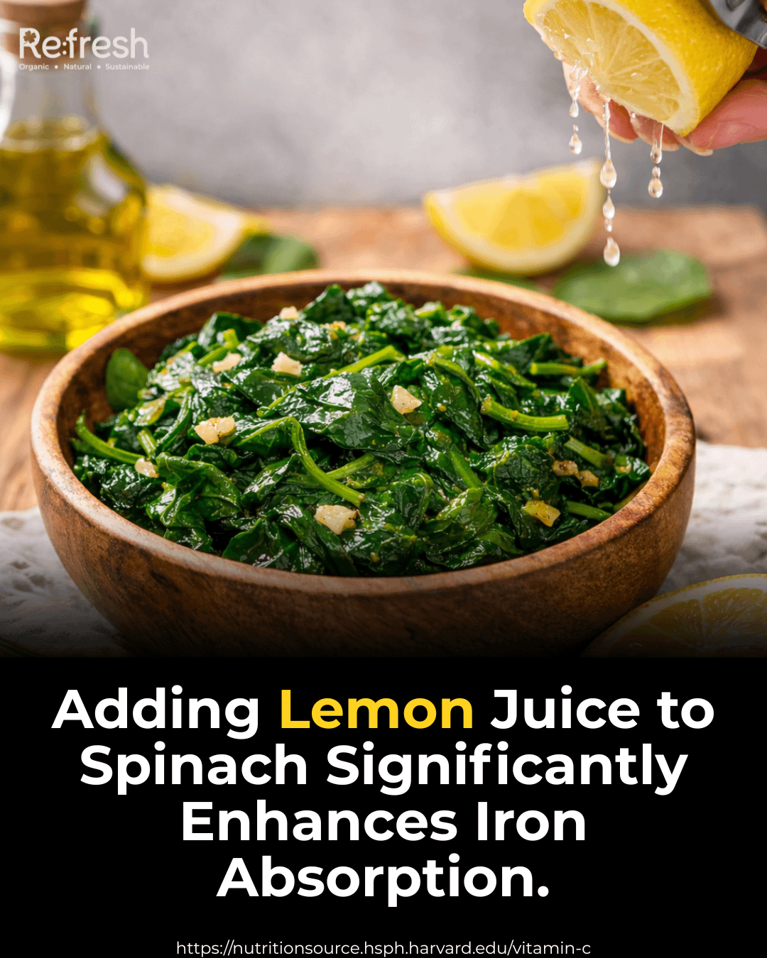 • Counteracting Inhibitors: Spinach contains oxalates (oxalic acid) and other compounds that normally bind to iron and block its absorption. The Vitamin C and acidity in lemon juice help break these bonds, making the iron more soluble and available for uptake.