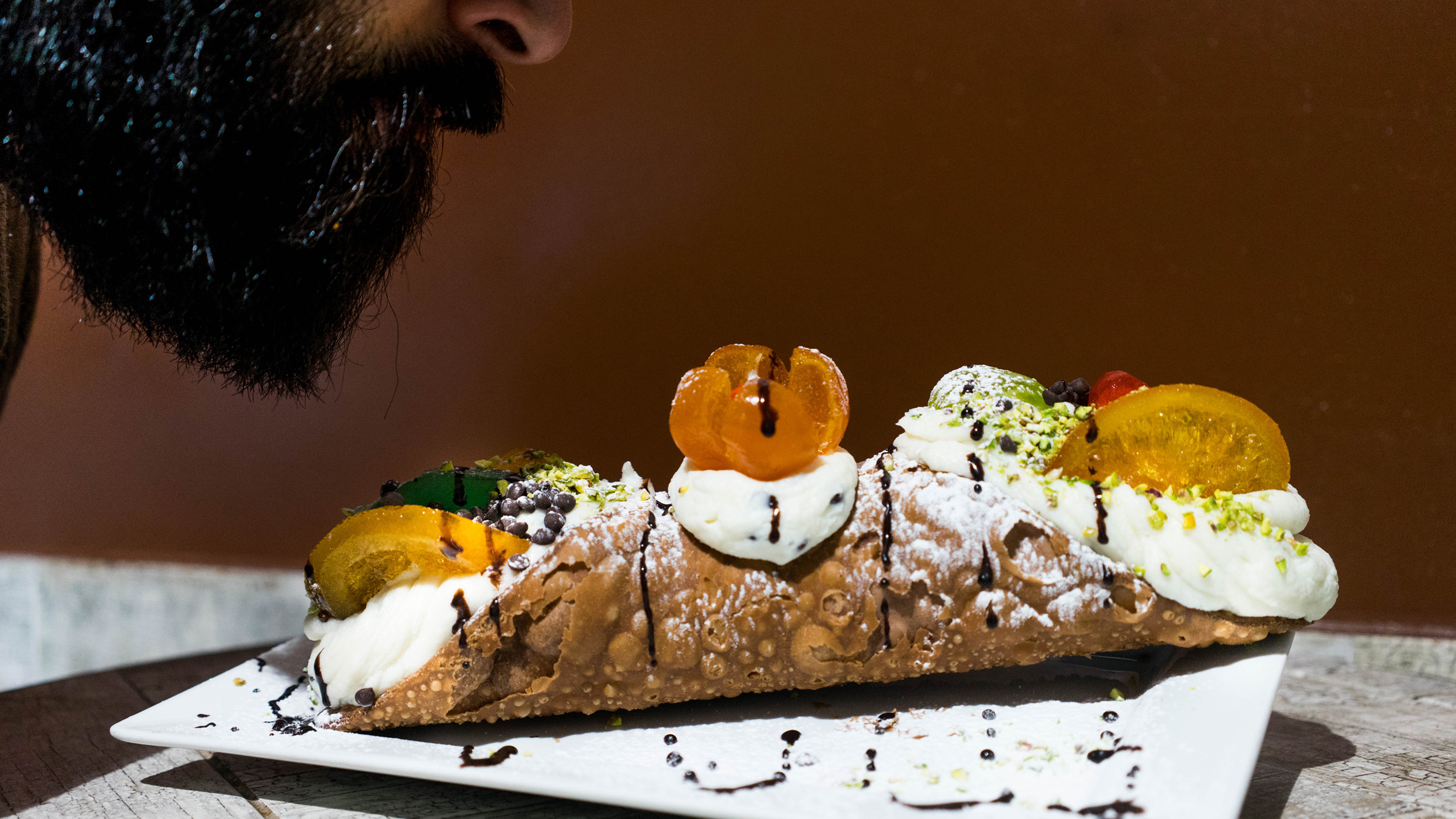 What registered immediately is that this captured the flavor of Sicily: Bright and crunchy breading, the right amount of oil, rice of optimal consistency, and flavorful sauce—slightly sugary with acidic and full-bodied notes, thanks to a generous simmering of red wine. I also cursed with added satisfaction when Totuccio greeted me with massive cannoli that vaguely resembled forearms stuffed with ricotta.