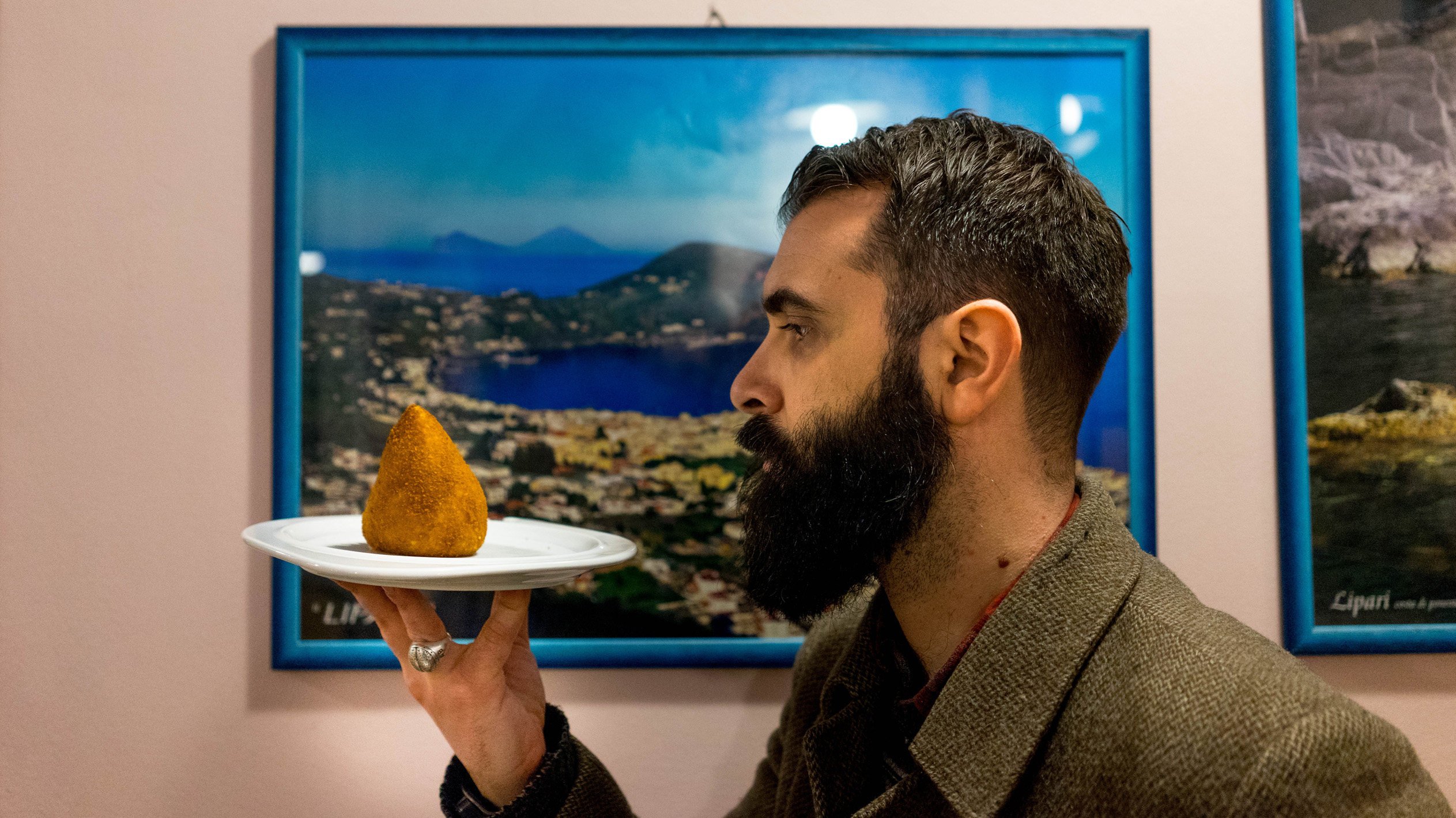 After seven and a half arancinos and arancinas, I could’ve stopped there. But the duty to document everything drove me further into the city’s Ortica neighborhood to my final stop of L’Eoliana. The spot is more known for its pastries and shaved ice, but I was optimistic that I’d still find arancini in sauce. It was 7 PM and there were still a few behind the counter.