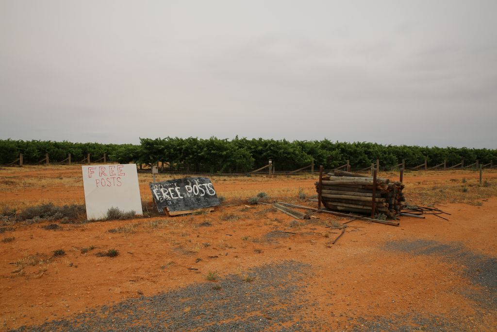 Unwanted CCA-treated posts piled outside a large vineyard in the Riverland. Photo: Meg Riley