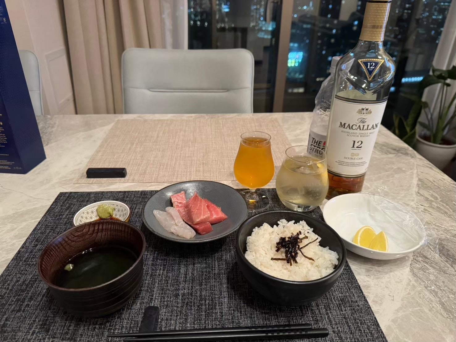 Tonight is simple — sashimi and miso soup.
