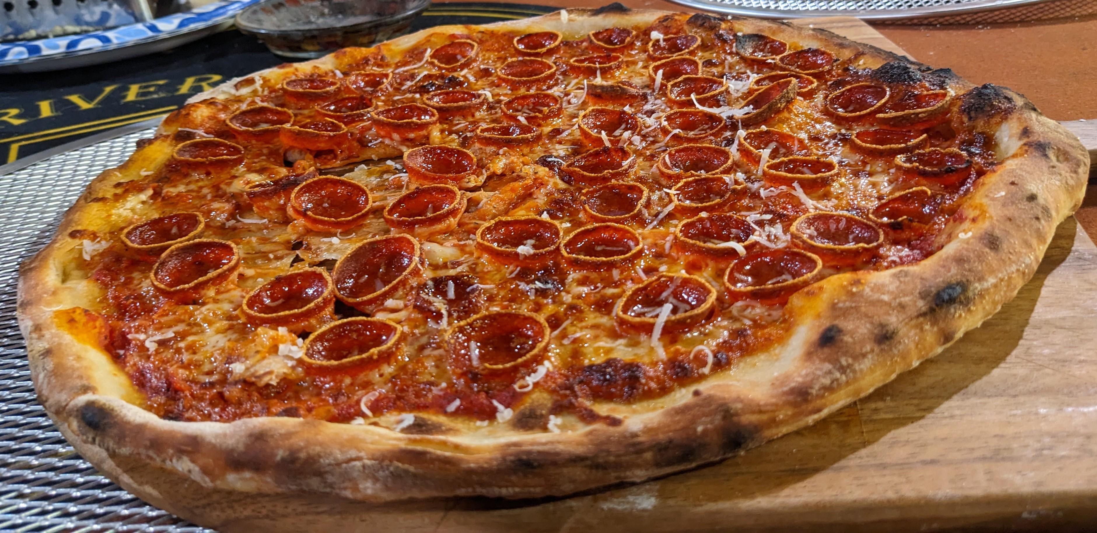 Used an Uuni 3 for many years with pellets and only did Neo style. Got a new oven for Christmas that does gas. Tried to start on a screen and transfer to the stone halfway through and got a little rip. Dough was the NY recipe from the book Elements of Pizza. Basic cheese, Hormel cup and char pep, pec ramano finish. Dough wasn't right but it's my fault with the oven. First pizza I've made in over 5 years.