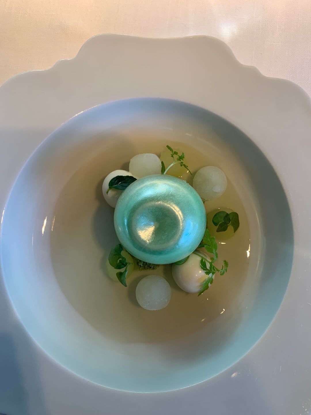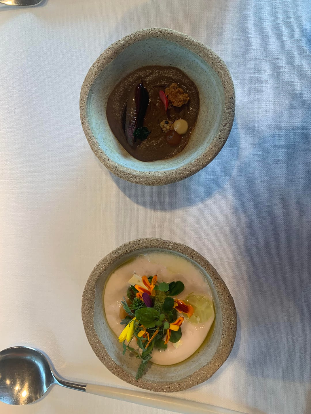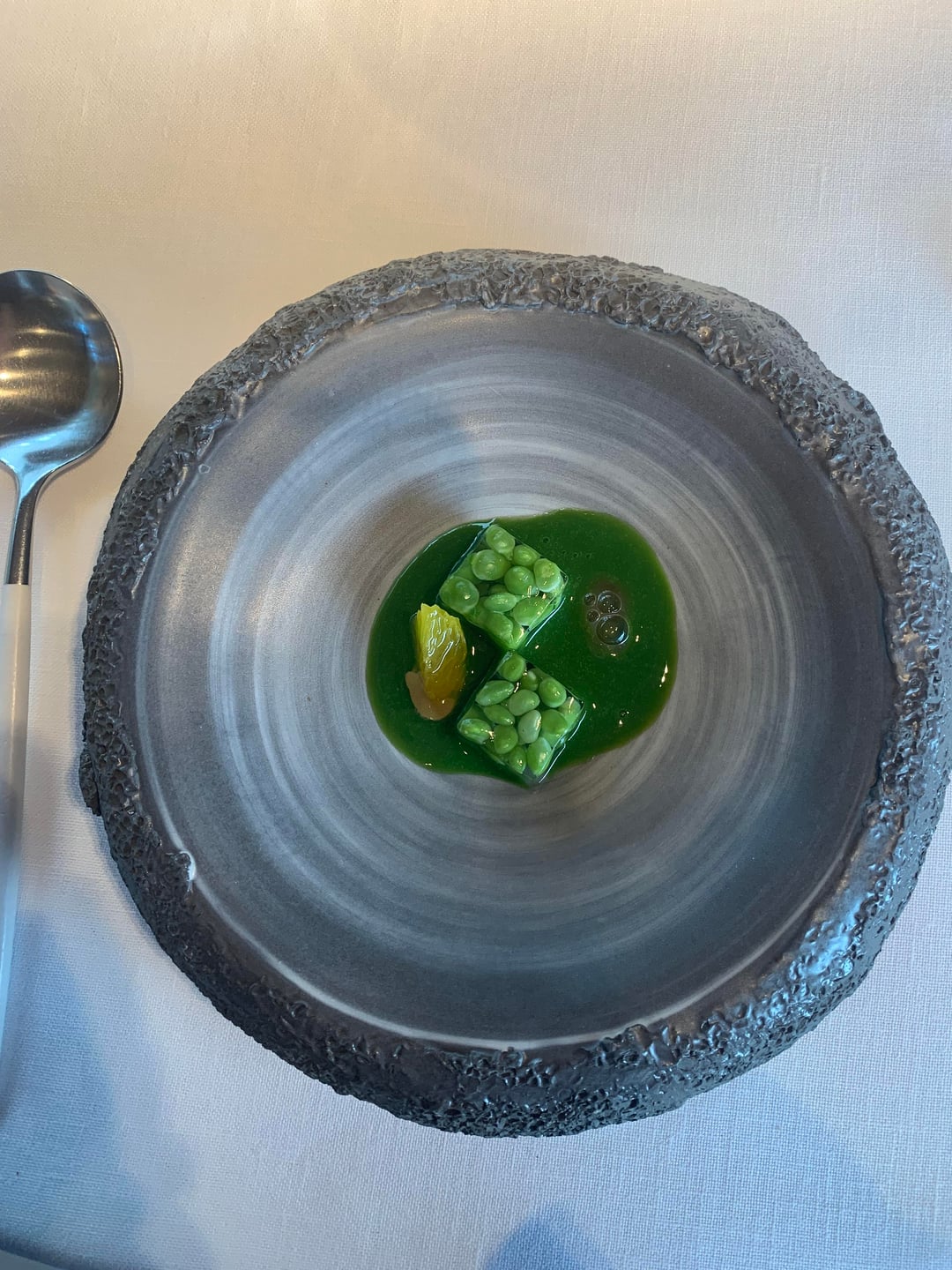 • Oyster leaf with distilled earth — very audacious ingredients and technique, combining freshness from the “oyster” with earthy warmth;