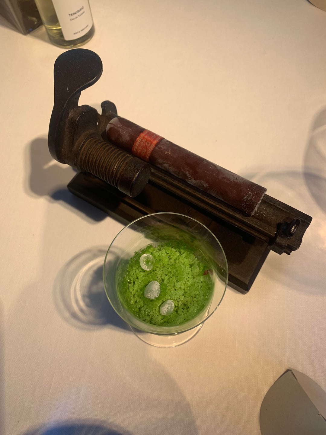 • We were lucky enough to have the Trip to Havana: it was like eating ashes in the best way possible — going for another bite we forgot how strong it actually was, and the “mojito” on the side was perfect to soften it out. A real dream come true.