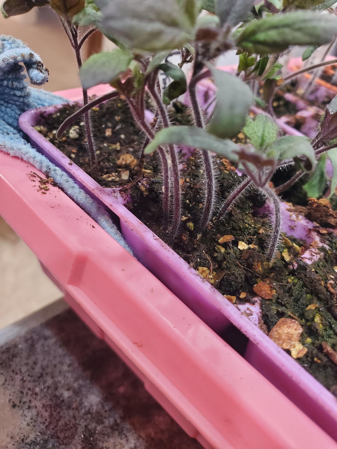 After separating, plant them deep enough in the next pot for the seed leaves to be a little higher than the soil. They’ll grow roots all along that buried stem.